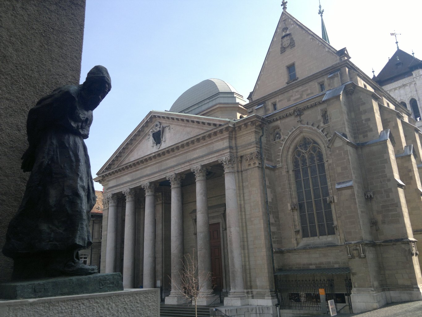 من بحيرة ليمان (جنيف)الى المدينة القديمة والأزقة الضيقة وفن العمارة الباهر والسلالم الحجرية لغاية وصولنا كاتدرائية بيرى في قلب المدينة القديمة. وتعد هذه الكاتدرائية اول بناية مسيحية على تلة عالية في المدينة القديمة. وقد زارت هذه الكاتدرائية شخصيات عالمية مثلا عام 1988 كانت اول زيارة للزعيم الروحي للتبت الدالاي لاما لها، وكذلك زارها كوفي عنان الامين العام السابق للأمم المتحدة، وكذلك راهب دير شيناكاوا. وهذه البناية تعد من اقدم البنايات في جنيف وتدخل ضمن علم الاثار .وفي الداخل حيث اللوحات المرسومة على الحيطان والمرمر  والصعود الى الابراج تفسح لمشاهدة بانوراما رائعة لمدينة جنيف. وقد تم تجديد البرج في القرن التاسع عشر، ويمكن مشاهدة المدينة كلها تقريبا. وفي البرج الشمالي يعلق الجرسان ويسمى(لاكليماس،لابيلريفي). لهذين الجرسين مكانة كبيرة وأهمية  وذلك حيث جرس (لاكليماس)يدق فقط حين تكون الاحداث مهمة للوطن.مابين الاعوام 1150ـ1230 اعدت الكنيسة على الاسلوب الغوتي والرومي ومنذ عام 1536 غدت الكاتدرائية اهم مكان للعبادة والقداسة في جنيف.