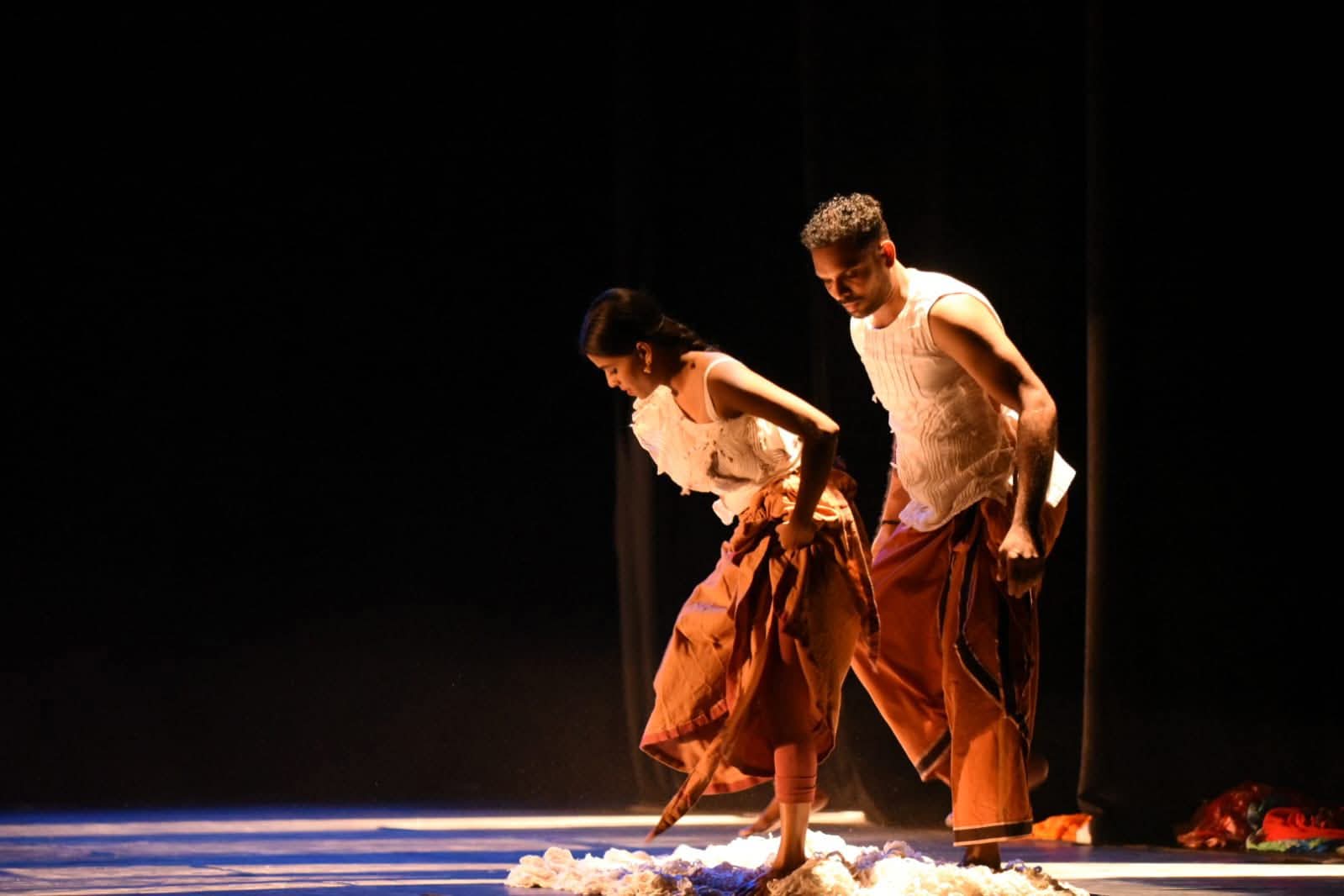 فلقد أغتنت الكوريغرافيا بعناصر مستمدة من الرقص الكلاسيكي الكاتاكالي*، ولكنها تجاوزت حدوده بتفكيكه في لغة معاصرة تتكئ على البساطة والفراغ. هذا التناصّ الحركي بين الكلاسيكي والمعاصر خلق بنيةً جسدية هجينة ، إذ يصبح الجسد مساحة تفاوض بين الموروث والمستحدث، بين المحلي والعالمي، بين ما فُرض من الخارج وما يُعاد ترميمه من الداخل.