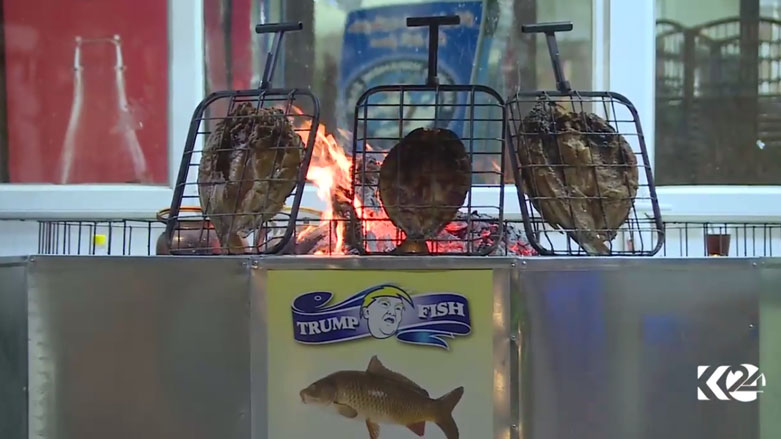 بالصور.. "ترامب" يطعم زبائنه سمكاً على الفحم في كوردستان