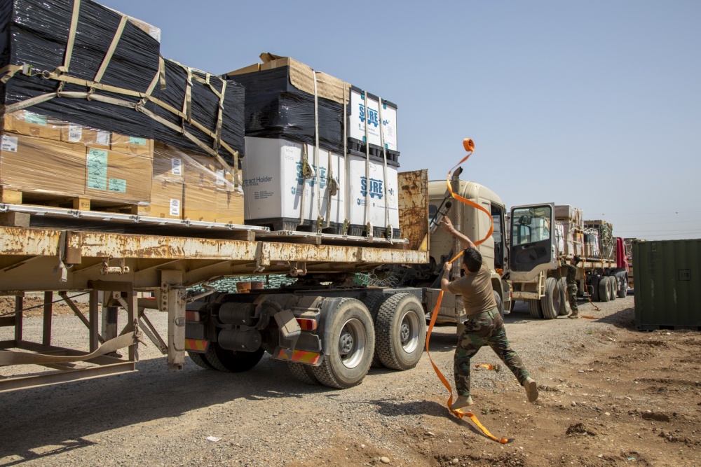وقال التحالف الدولي في بيان إنه جهز البيشمركة مؤخراً بـ23 حاوية تضم زياً عسكرياً وأسلاكاً شائكة ضمن برنامج تمويل التجهيز لمكافحة داعش.