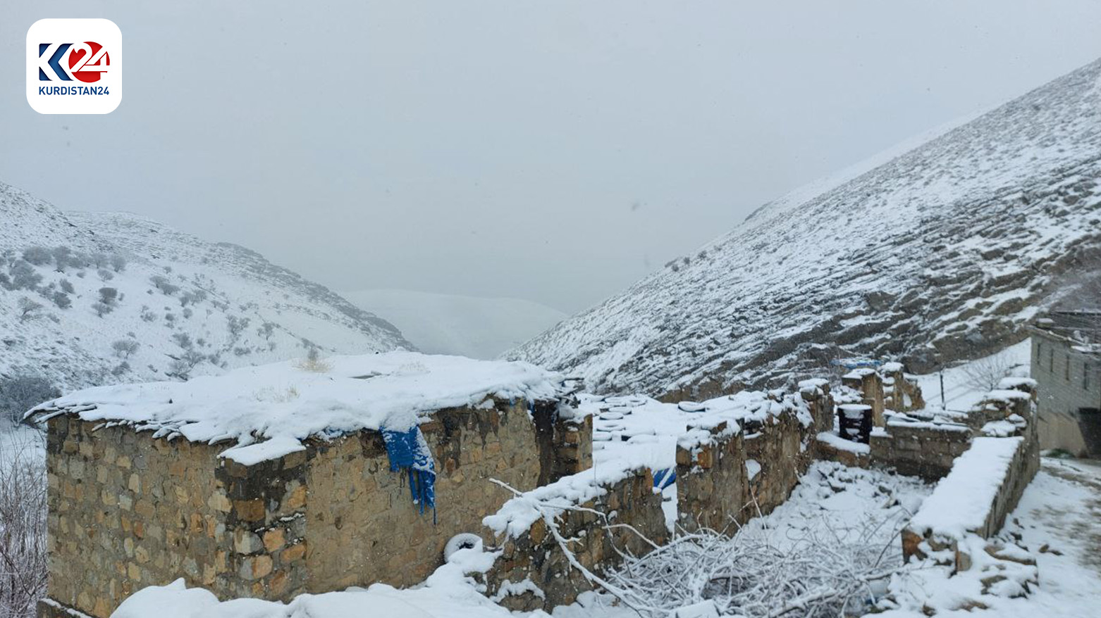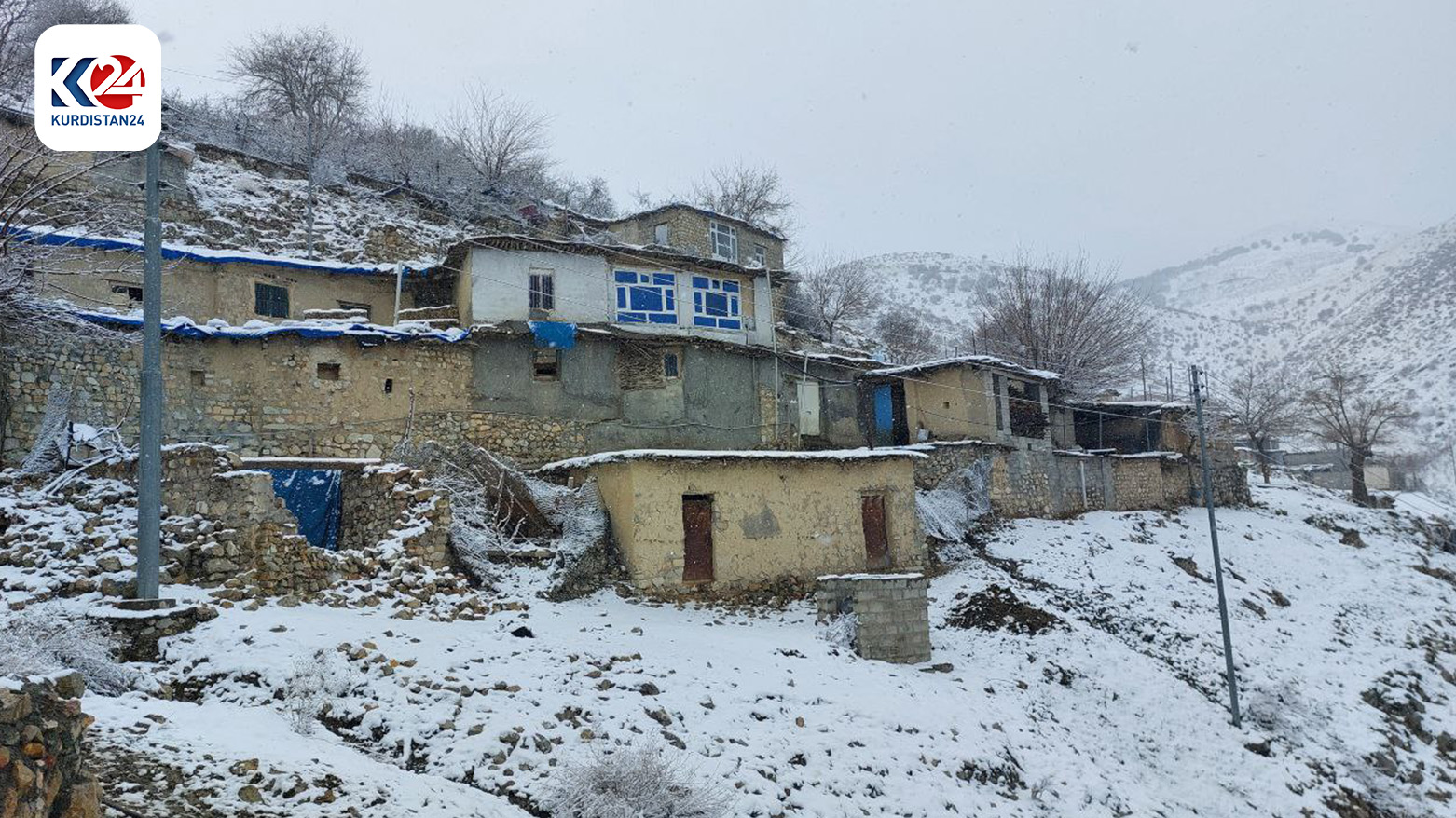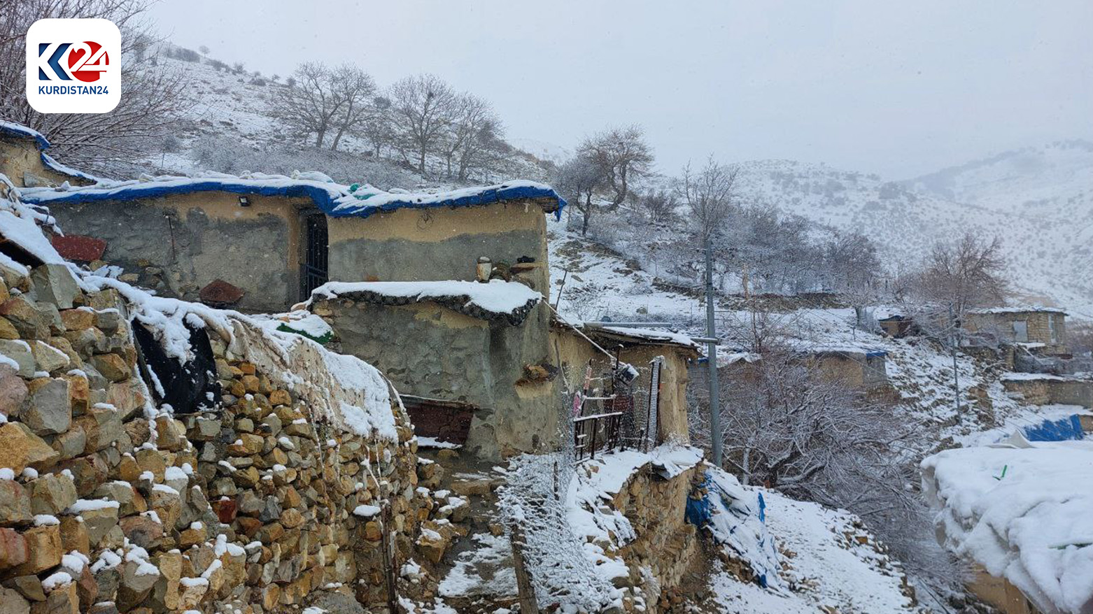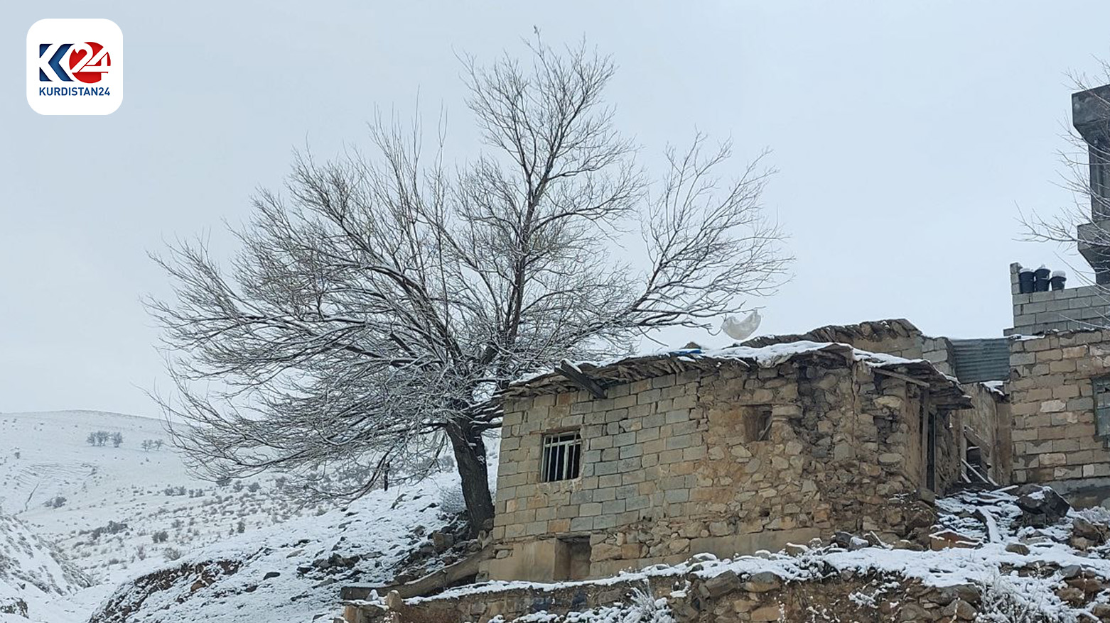 أهالي كوردستان يستمتعون بأجواء الثلوج والقرى الكوردية تكتسي بغطاء أبيض رائع