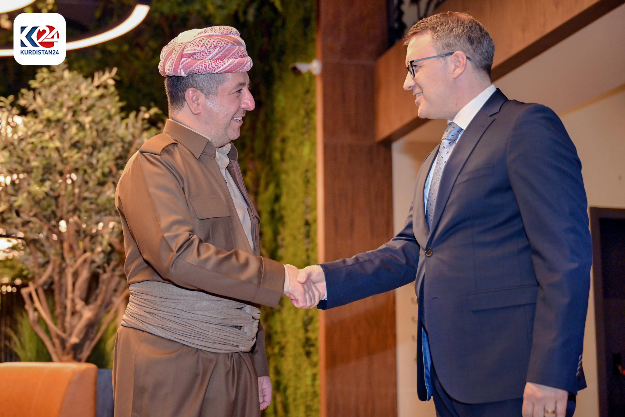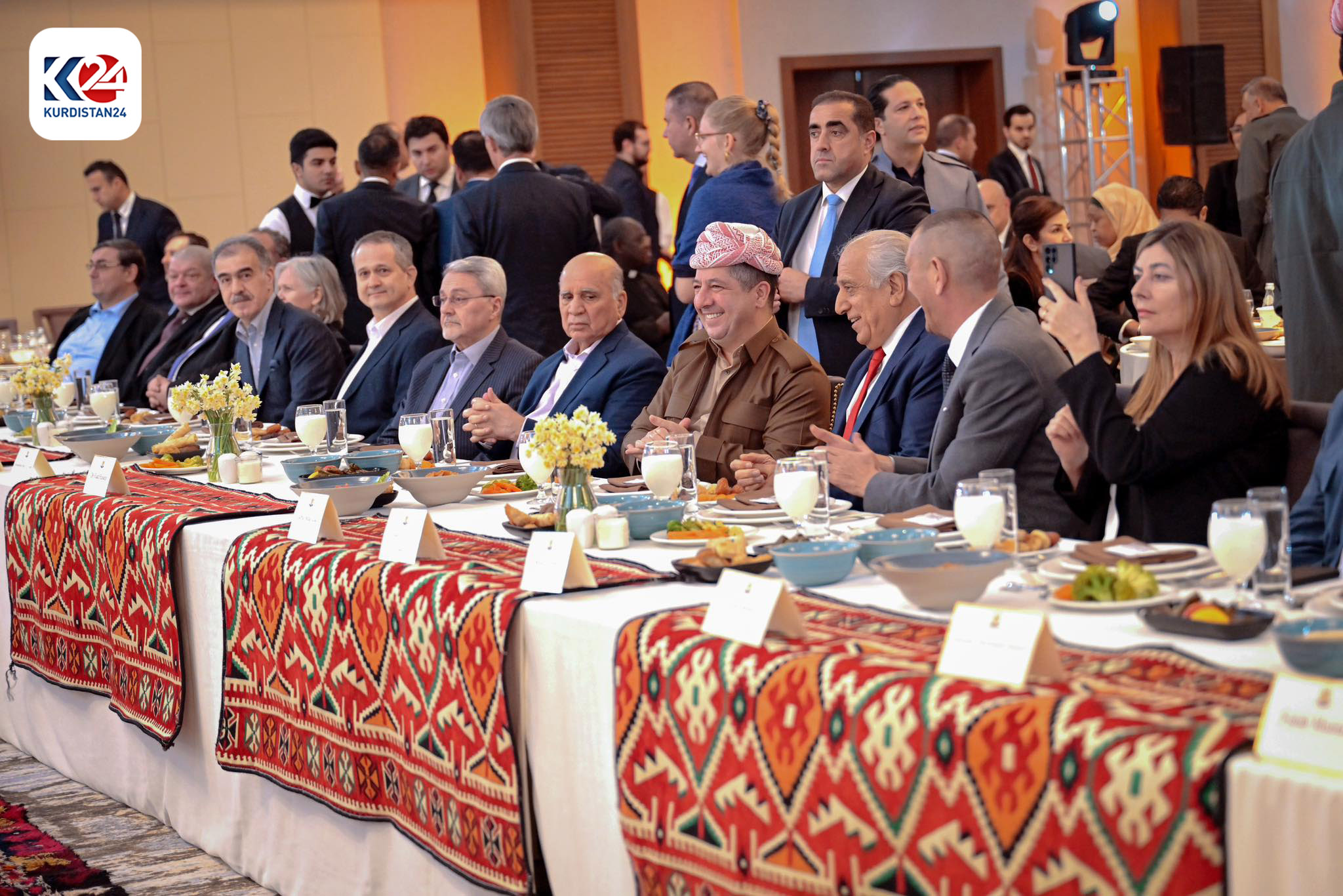 أربيل (كوردستان24)- استضاف رئيس حكومة إقليم كوردستان مسرور بارزاني، مساء اليوم الجمعة 21 آذار (مارس) 2025، في مجمع كورك السياحي بإدارة سوران المستقلة، عدداً من السفراء والدبلوماسيين وذلك احتفالاً بعيد نوروز.