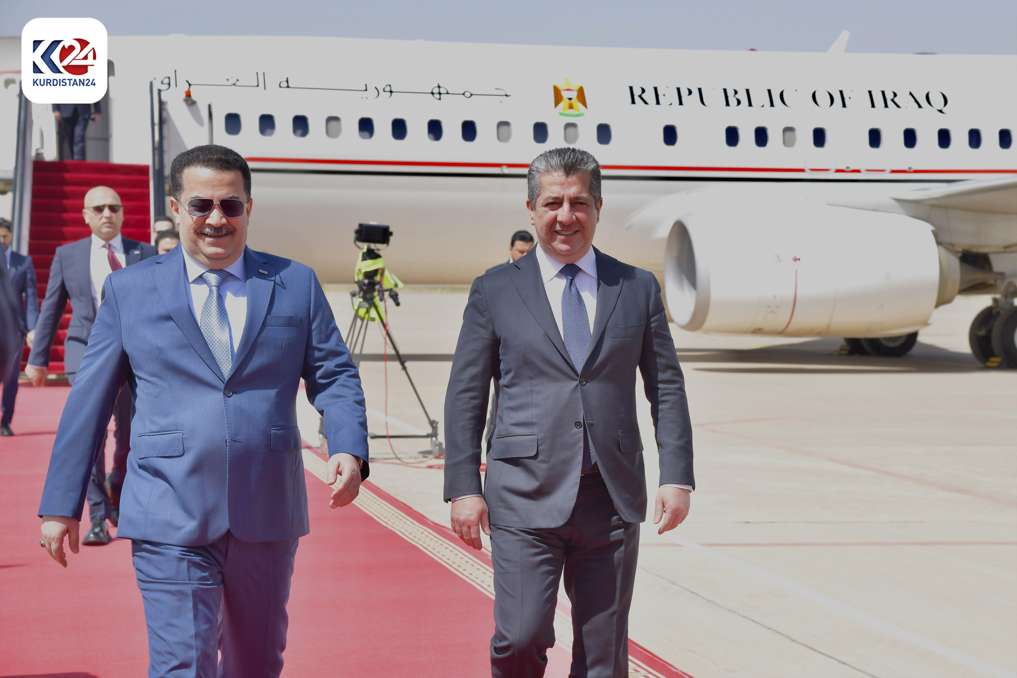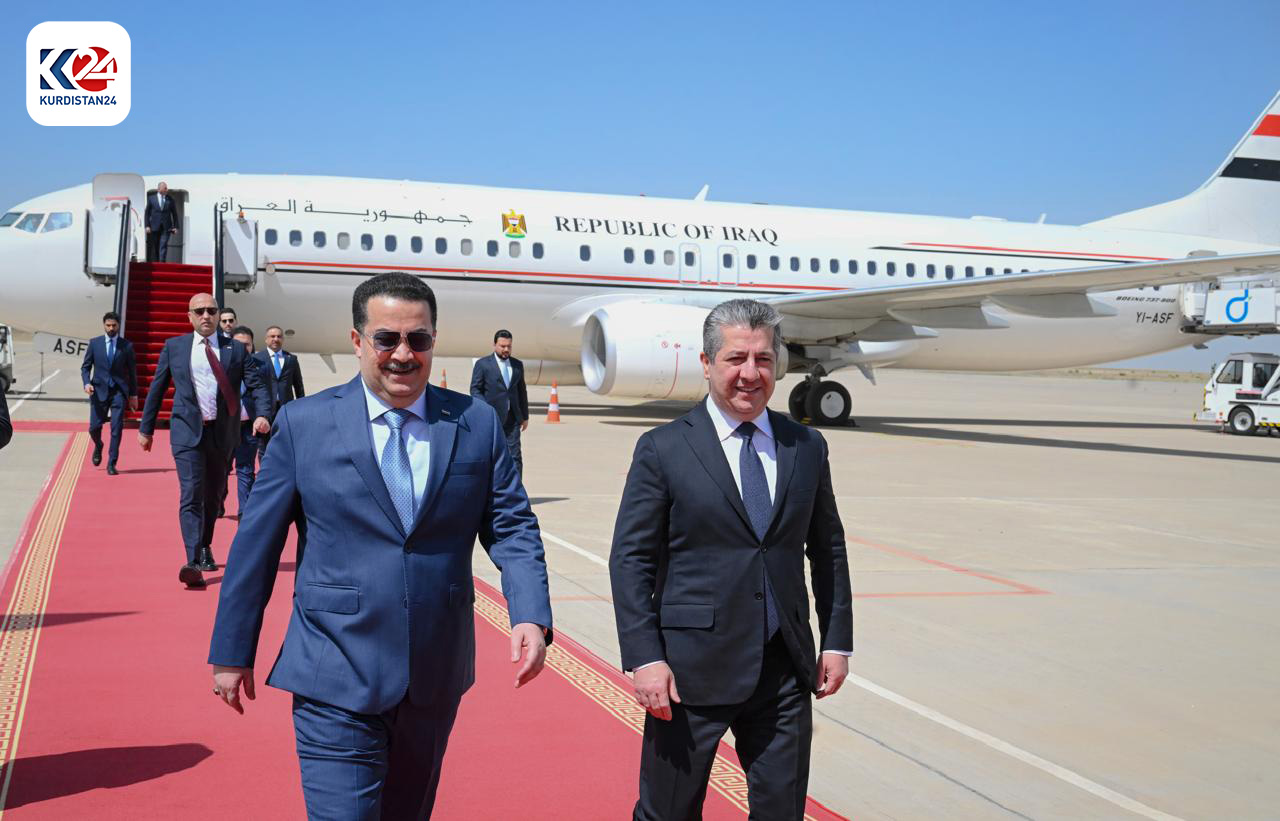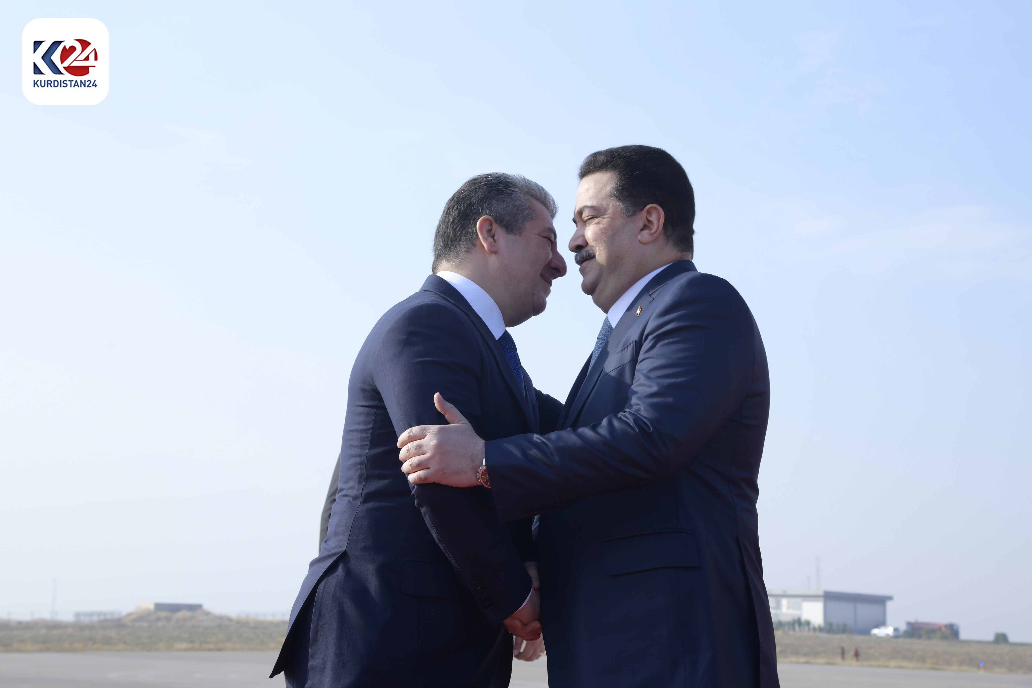أربيل (كوردستان 24)- استقبل رئيس وزراء إقليم كوردستان مسرور بارزاني، صباح اليوم السبت، رئيس الوزراء الاتحادي محمد شياع السوداني في مطار أربيل الدولي، في زيارة رسمية تأتي ضمن إطار الحوار والتواصل بين بغداد وأربيل.