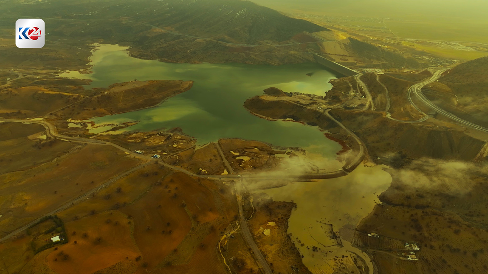 أربيل (كوردستان 24)- شاهد جمال الطبيعة وقوة الخير؛ سد "گۆمسپان" يفيض بالحياة ويمتلئ عن آخره بعد زخات المطر المباركة التي هطلت على أربيل، ليرسم لوحة مائية رائعة بين جبال كوردستان.