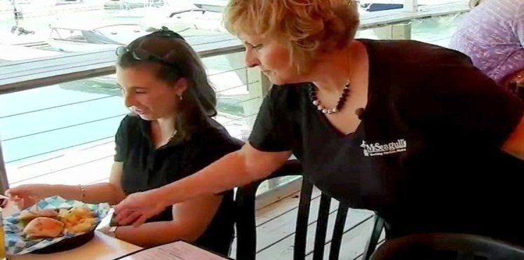 تقوم زوجة حاكم ولاية مين الامريكية بتقديم الطعام للسائحين حيث تعمل نادلة في مطعم وذلك لتأمين مصاريف اضافية لها ولعائلتها.