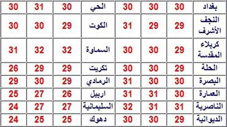 ذكرت هيئة الانواء الجوية السبت ان الطقس خلال الايام الثلاثة المقبلة سيكون صحوا وغائما جزئيا مع تباين في درجات الحرارة في العراق.