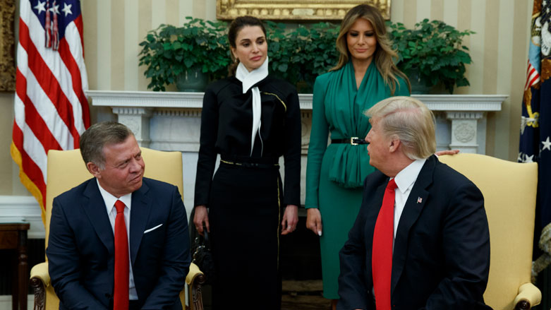 وكتبت رانيا على منصاتها في الانترنت، "مع جلالة الملك خلال استقبالنا من قبل رئيس الولايات المتحدة دونالد ترامب والسيدة الأولى ميلانيا ترامب في البيت الأبيض".