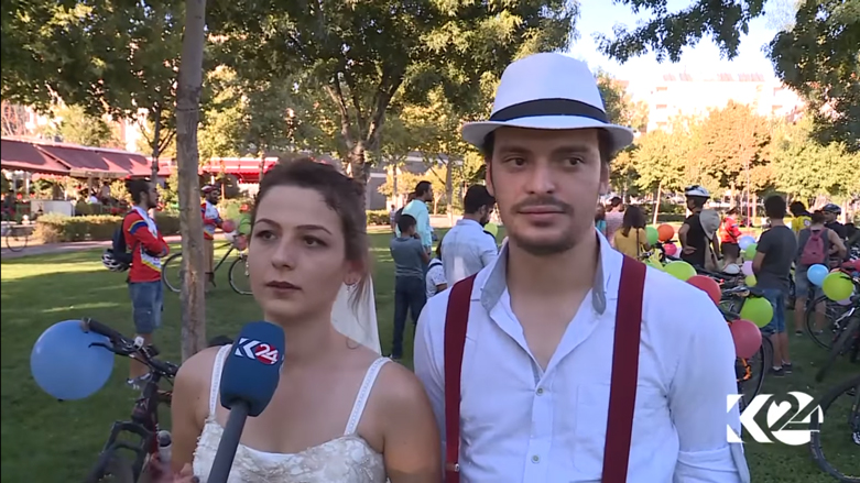 وقالت العروس لكوردستان 24 ان "استخدام الدراجة الهوائية يخفف من الأزمة المرورية الخانقة في المدينة كما أنه مفيد للصحة ..باعتباري طبيبة (وهي ضاحكة)".