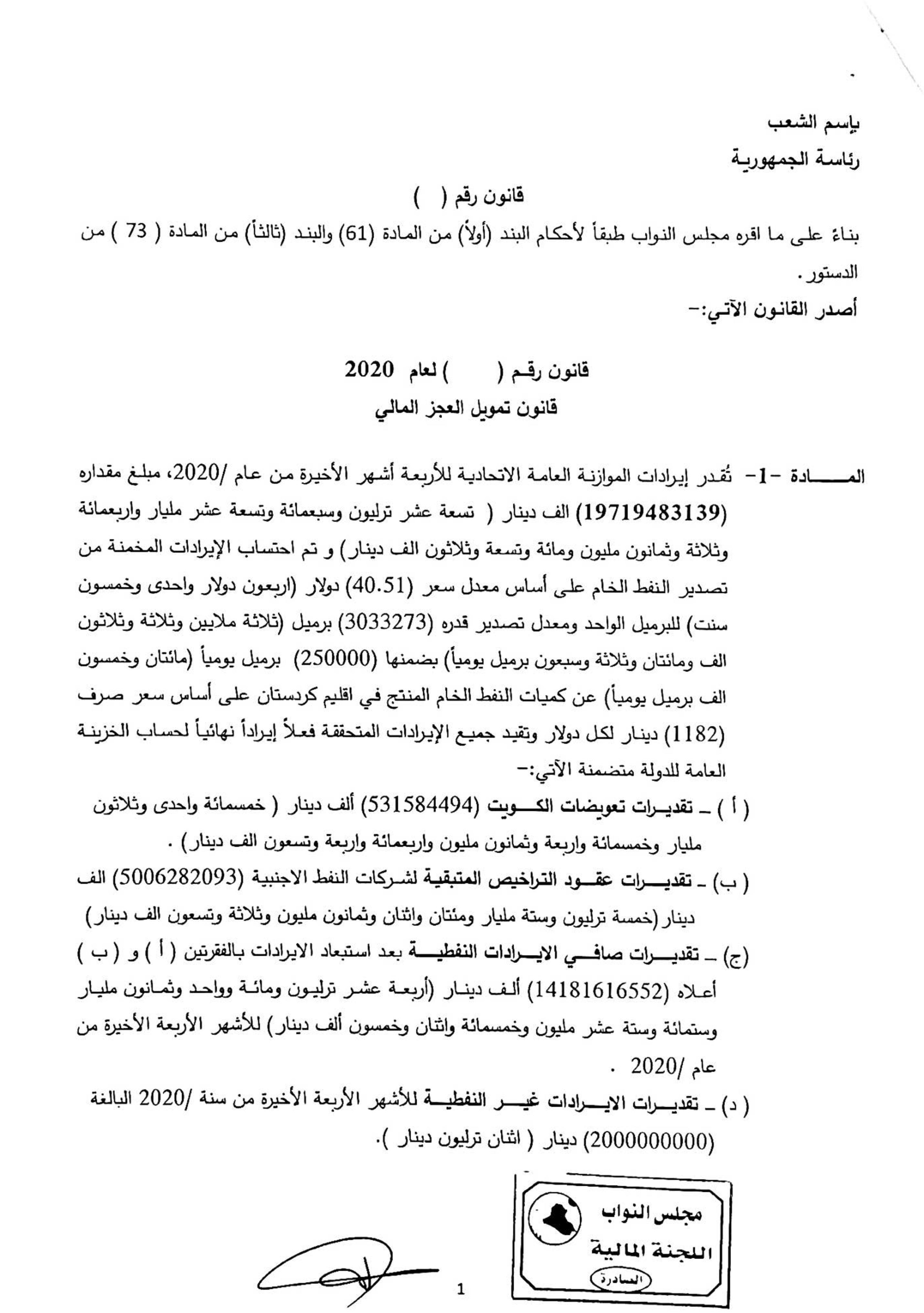 اقرأ أيضاً: وسط اعتراض الكورد.. البرلمان العراقي يقر قانون "العجز المالي"