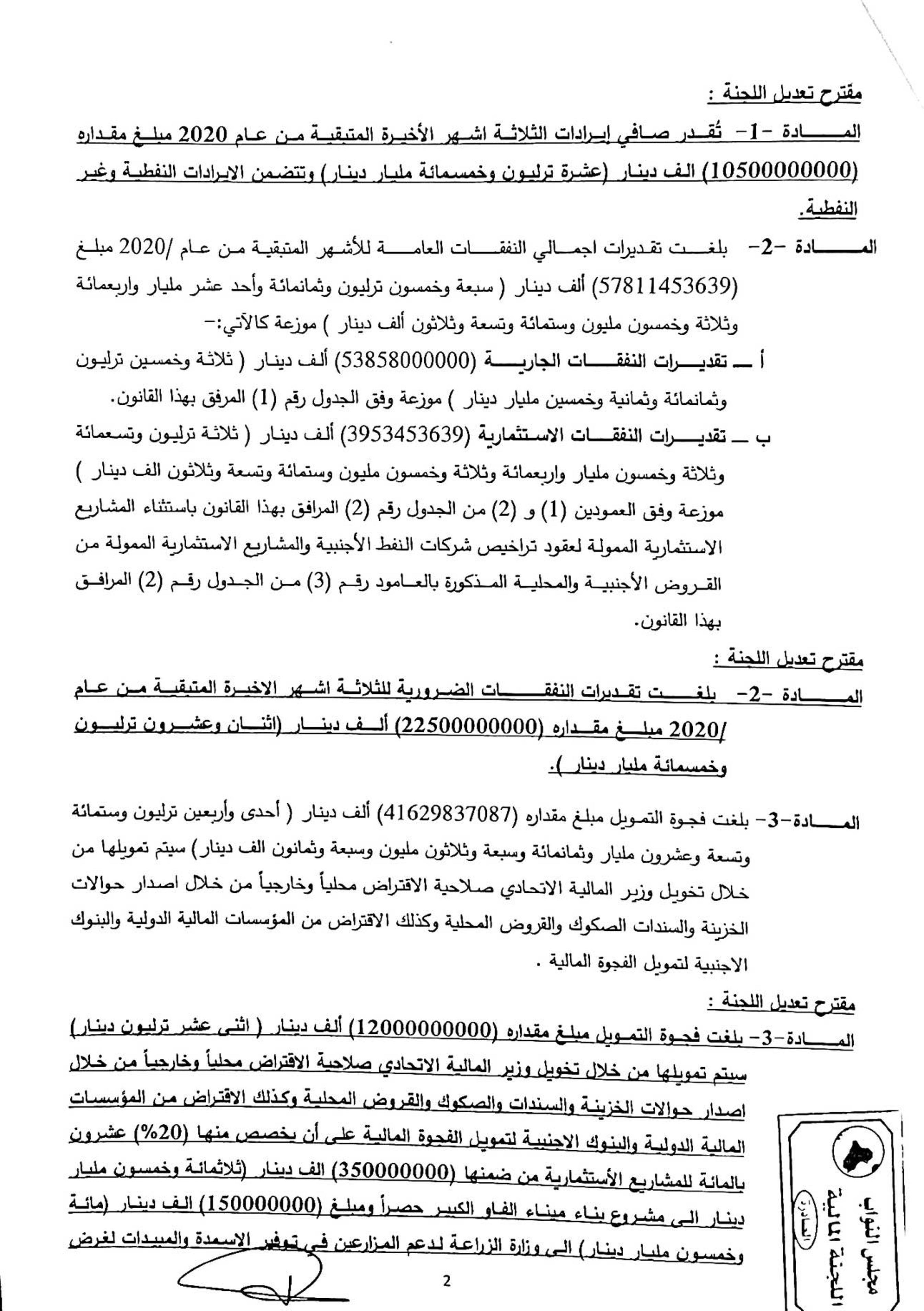 بالوثائق | نص قانون تمويل العجز المالي