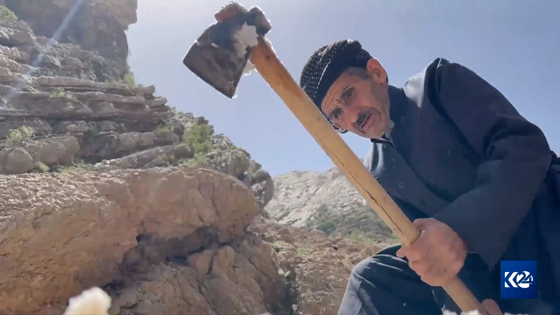 أربيل (كوردستان24) - من أجل الحصول على قطع " ثلج " واستعماله في " لبن العيران " وتبريد الماء ، يسير الحاج جلال مسافات طويلة ووعرة من أجل صعود جبل " بيرمكرون " في محافظة السليمانية ،طريق يحتاج الى توخي الحذر.. جبل " بيرمكرون " الذي يبقى فيه الثلج حتى في فصل الصيف ، كان الناس يقصدونه قديما لجلب الثلج ..