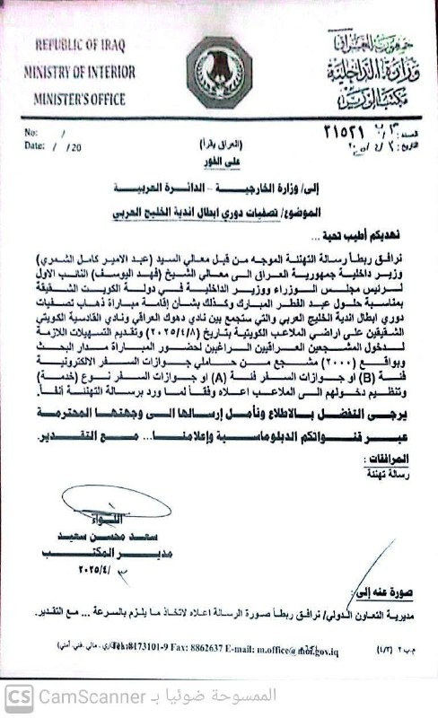 وأوضح تيمور في تصريح صحفي له، أنه وبعد إصراره على منح تأشيرات بجوازات سفر عادية وإعفاء أنصار النادي من رسوم التأشيرة، استجاب وزير الخارجية العراقي فؤاد حسين لطلبه، ووجّه بدوره وزير الداخلية بإرسال كتاب رسمي إلى نظيره الكويتي، وقد تم إعداد الكتاب يوم السبت الماضي.