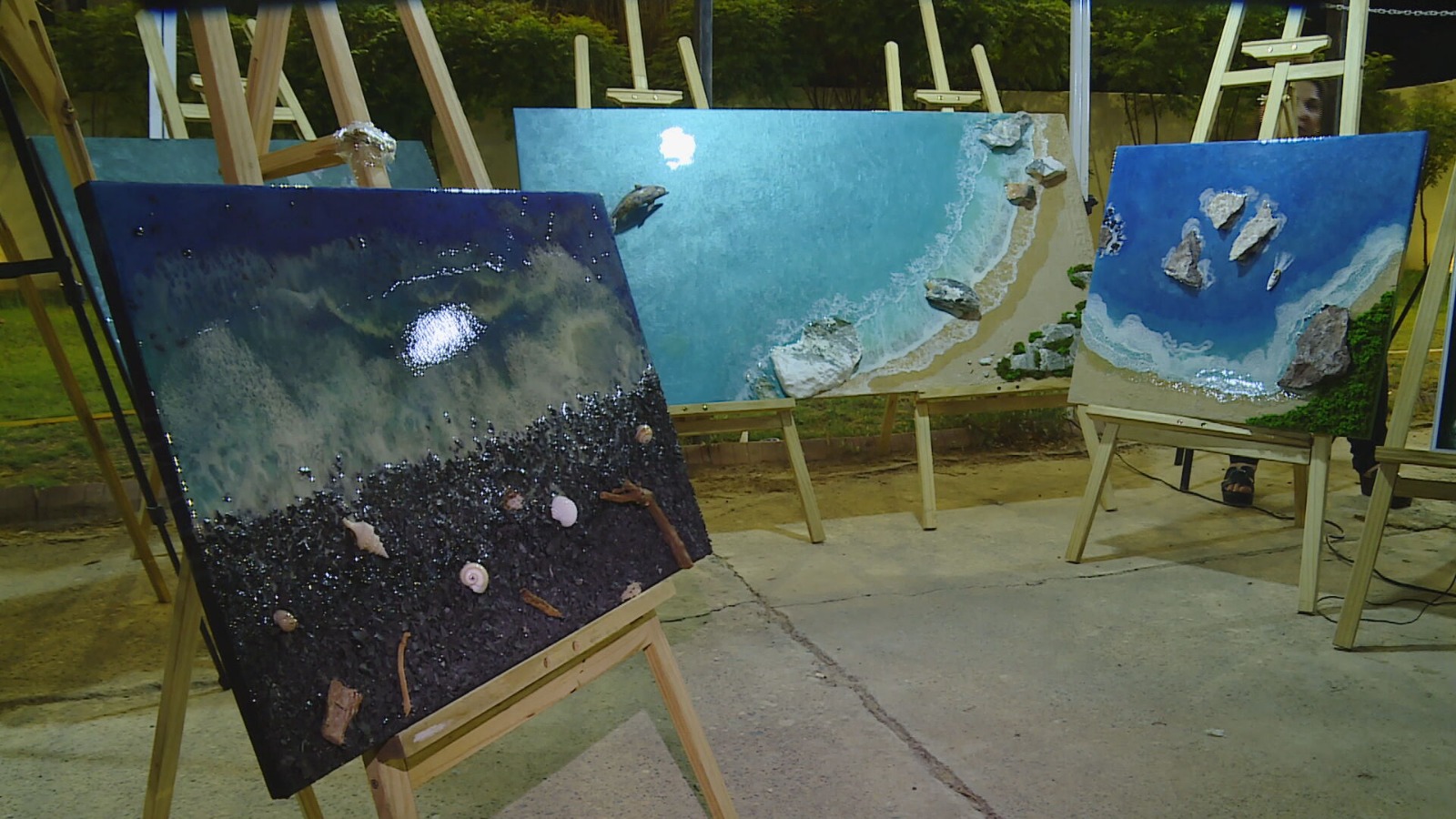 "اليوم أشارك في هذا المعرض الفني بعرض أعمالي بأسلوب الحرق على الخشب، وهو نوع من الفنون التي نستخدم فيه أدوات الكاوية لإنجاز اللوحات. هذا النمط الفني فريد من نوعه، ونحن نعتمد عليه كثيراً في أعمالنا."