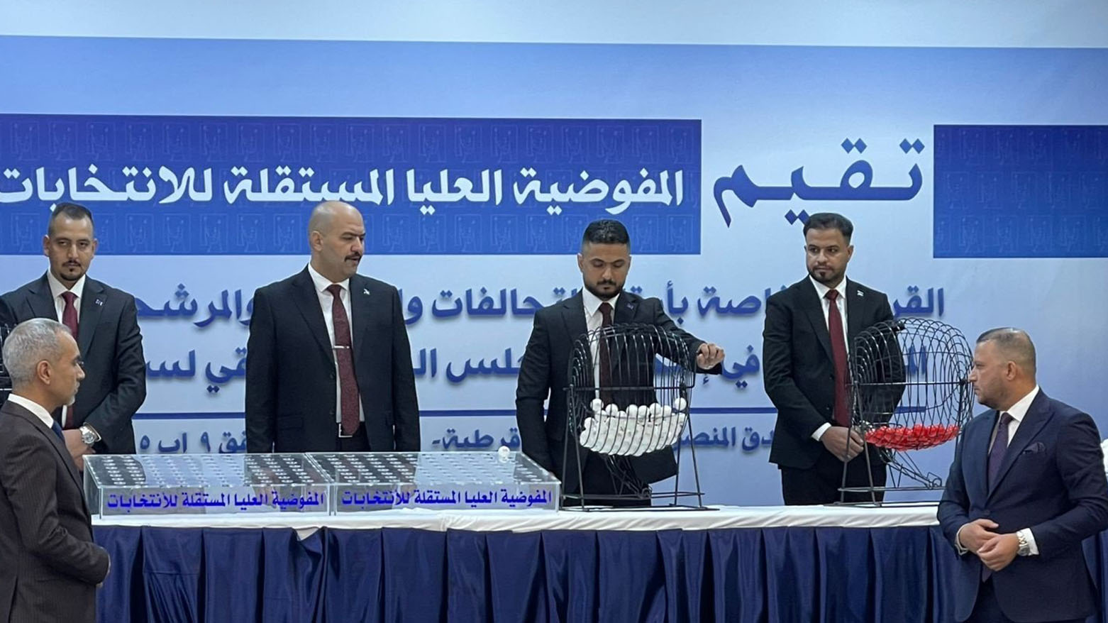 وشملت القرعة جميع التحالفات والأحزاب السياسية والمرشحين الأفراد المسجلين رسميًا لدى المفوضية، وبلغ عددها (31) تحالفاً سياسياً، (38) حزباً، (76) مرشحاً فردياً، من بينهم: (23) مرشحًا عن المقاعد العامة و(53) مرشحًا عن مقاعد المكونات".