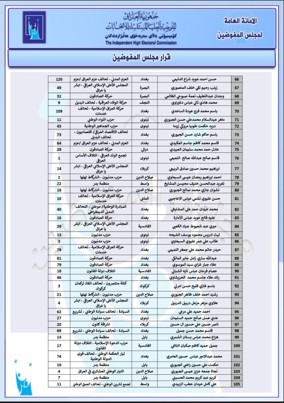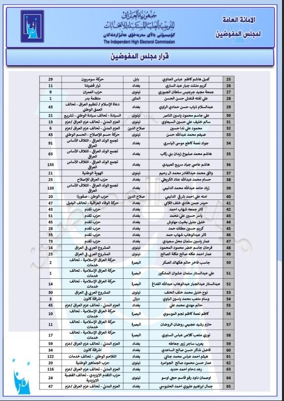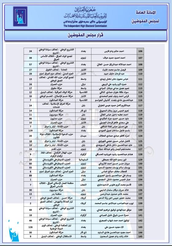 ونقلت الوكالة الرسمية عن مصدر، إن "المفوضية استبعدت أحمد الجبوري (أبو مازن) و نجم الجبوري بسبب قيود جنائية".