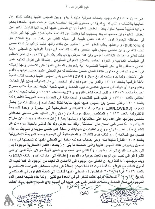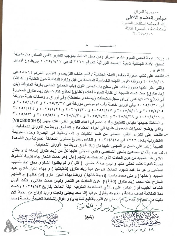 قسم التقنيات والمعلوماتية في البصرة أكد أن التسجيلات، أصلية وغير مزوّرة، وتضمنت ملفًا صوتيًا يؤكد نية الانتحار.