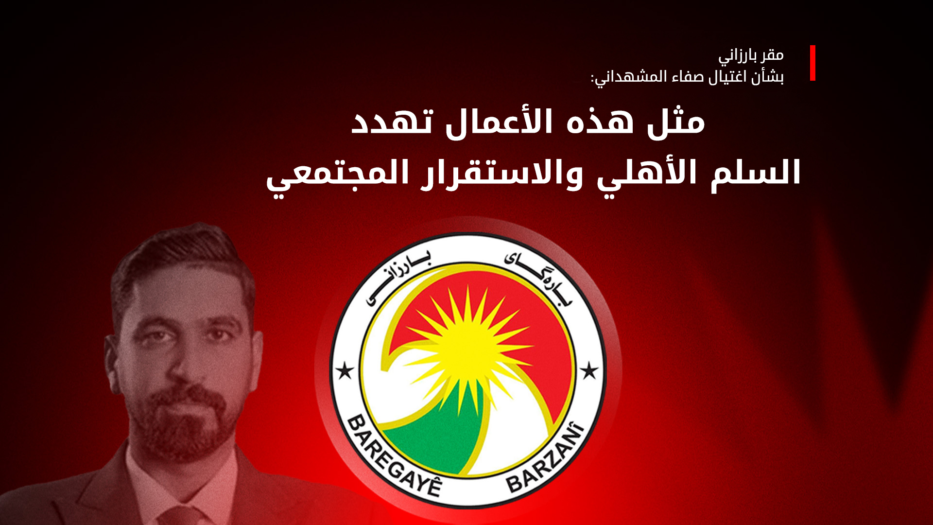 أربيل (كوردستان 24)- أدان مقر بارزاني بشدة اغتيال صفاء المشهداني، عضو مجلس محافظة بغداد ومرشح تحالف السيادة، الذي استُهدف بانفجار عبوة لاصقة في العاصمة بغداد مساء أمس.