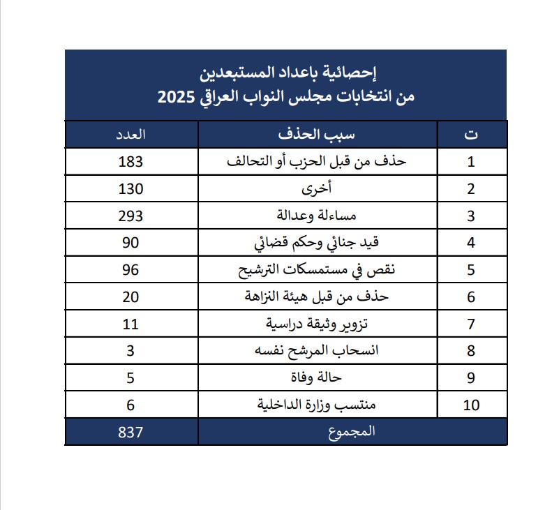 المفوضية تكشف أرقاماً نهائية تُبرز حجم المنافسة والاستبعاد في انتخابات 2025