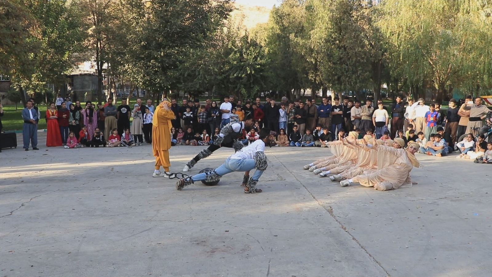 وأوضح الفنان كوشا سەییادي من مدينة "تاورز" أن مسرحيته تناولت قصة صاروخ لم ينفجر بسبب المطر والثلوج، في إشارة رمزية إلى براءة الأطفال وحقهم في الأمان أثناء الحروب، قائلاً: