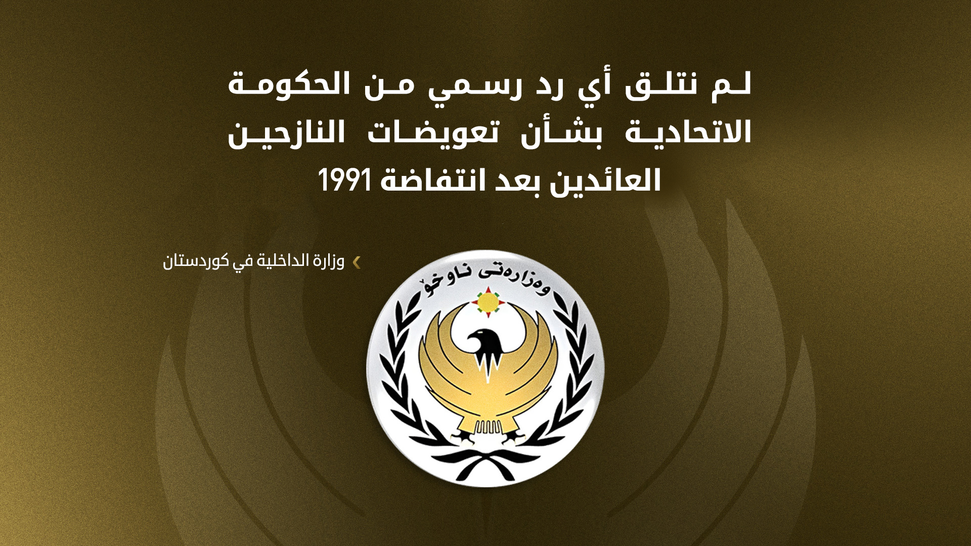 أيها المواطنون الأعزاء، نود إعلامكم بأن بعض الأخبار المتداولة مؤخراً غير دقيقة، وتزعم أن الحكومة الاتحادية/وزارة الهجرة والمهجرين ستعوض المواطنين الذين نزحوا إلى إيران وتركيا وسوريا بسبب سياسات نظام البعث، خصوصاً بعد اتفاقية الجزائر المشؤومة عام 1975، والذين عادوا إلى إقليم كوردستان بعد انتفاضة شعبنا عام 1991.
