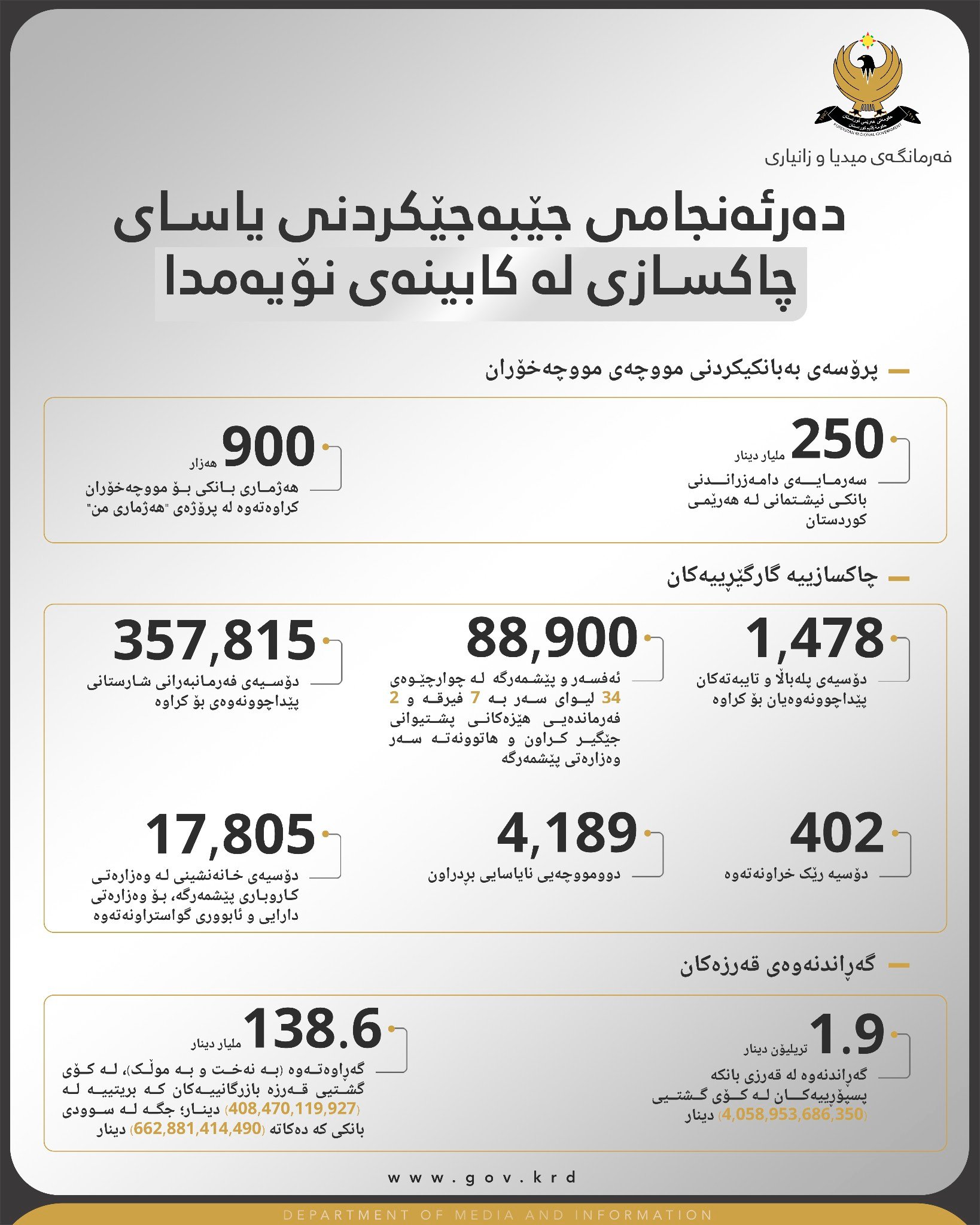 الإصلاحات التي أجرتها التشكيلة التاسعة لحكومة إقليم كوردستان بالأرقام
