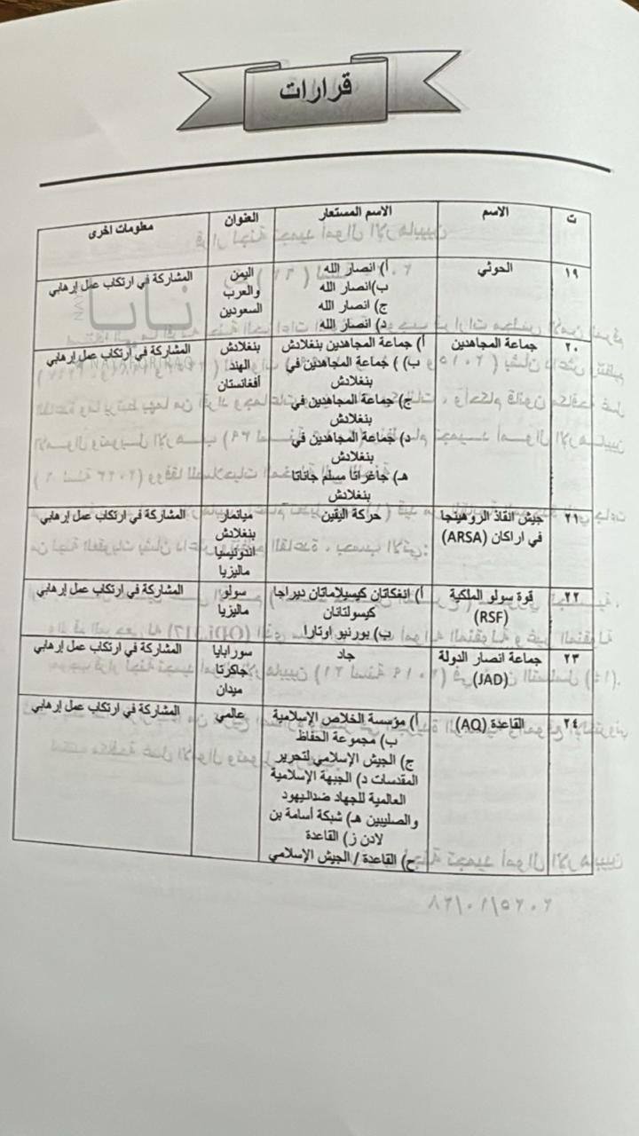 التسلسل (19): يخص جماعة "الحوثي" (المعروفة بأسماء مستعارة مثل أنصار الله)، ومقرها اليمن.