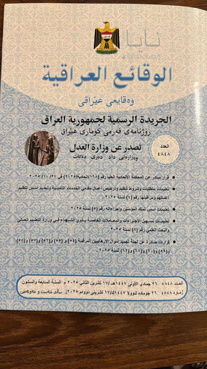 ووفقاً للعدد (4848) من الجريدة الرسمية، الصادر بتاريخ 17 تشرين الثاني/نوفمبر 2025، فقد تضمنت قائمة "القرارات" تسلسلين جديدين: