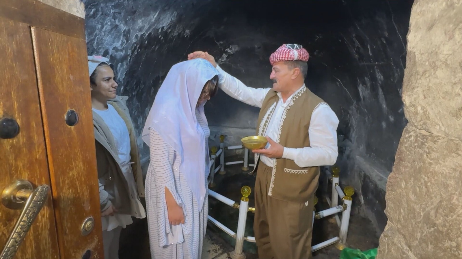 أربيل (كوردستان 24)- امتلأ معبد لالش بأصوات الهلاهل ومشاعر الفرح، خلال استقبال الناجية الإيزيدية سعاد وابنتها بعد تحريرهما من قبضة تنظيم داعش، ليخضعا لطقس التعميد بماء “النبع الأبيض” (كانيا سبي)، في احتفال رمزي يعيدهما إلى حضن الديانة الإيزيدية وجذورهما الاجتماعية.