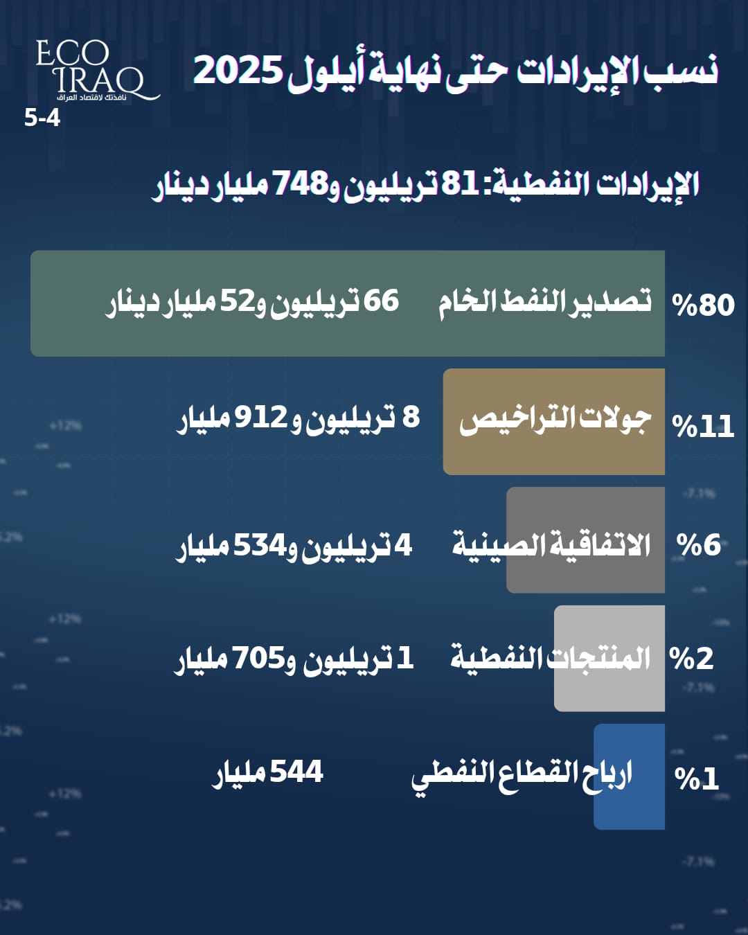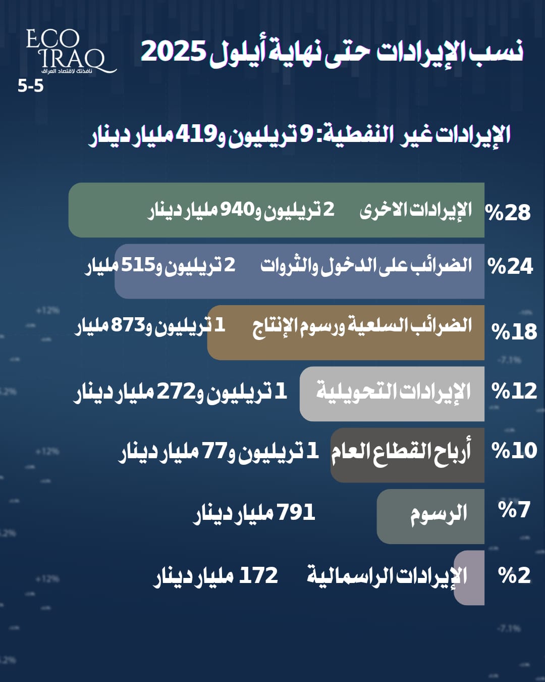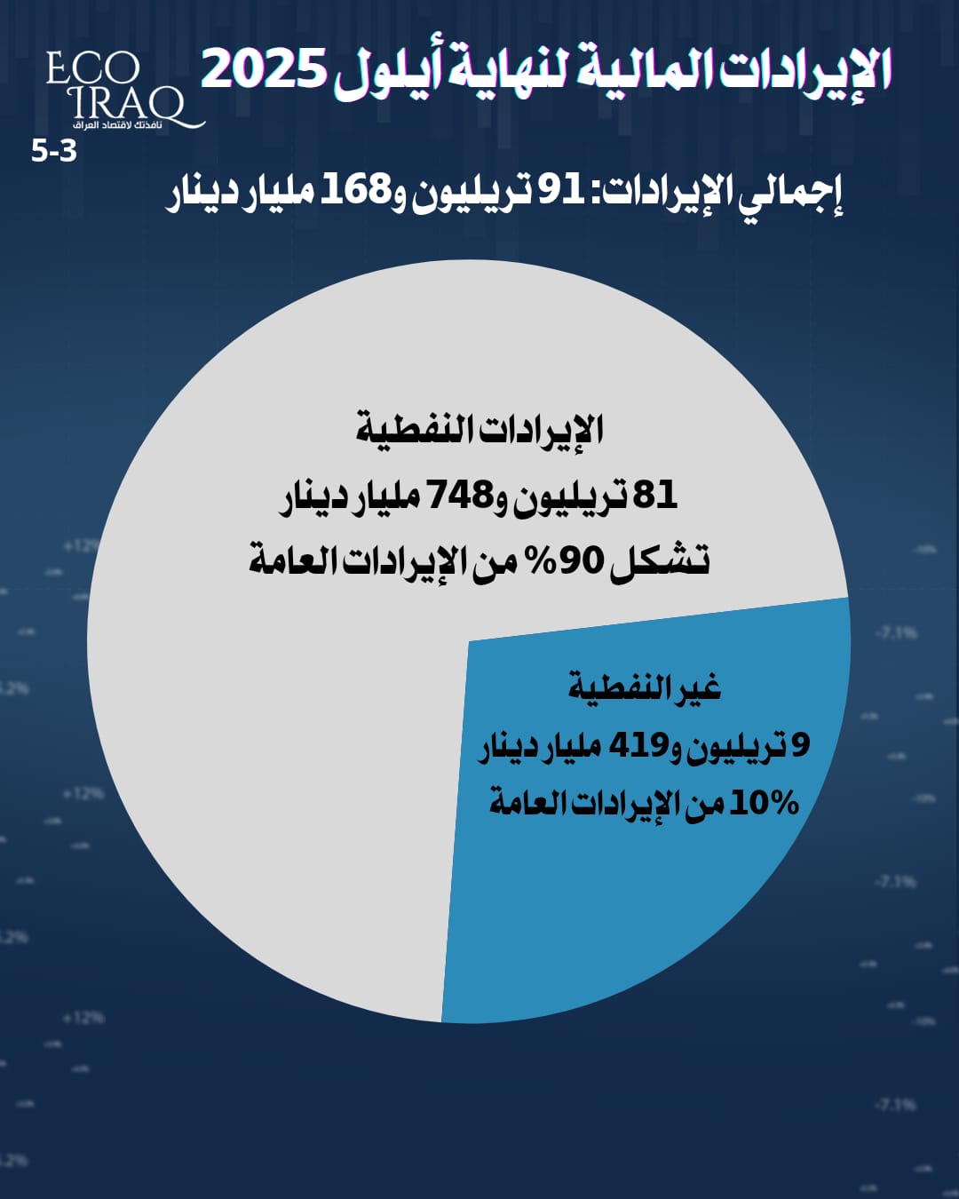 وجاءت البيانات المالية للعراق حتى نهاية أيلول 2025 على النحو الآتي: