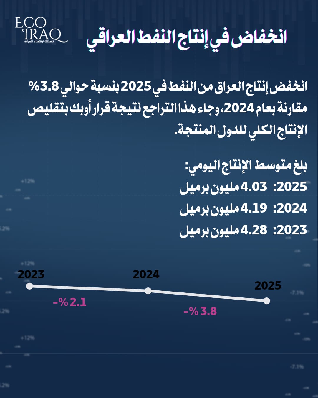 متوسط الإنتاج اليومي للعراق 4.03 مليون برميل في 2025