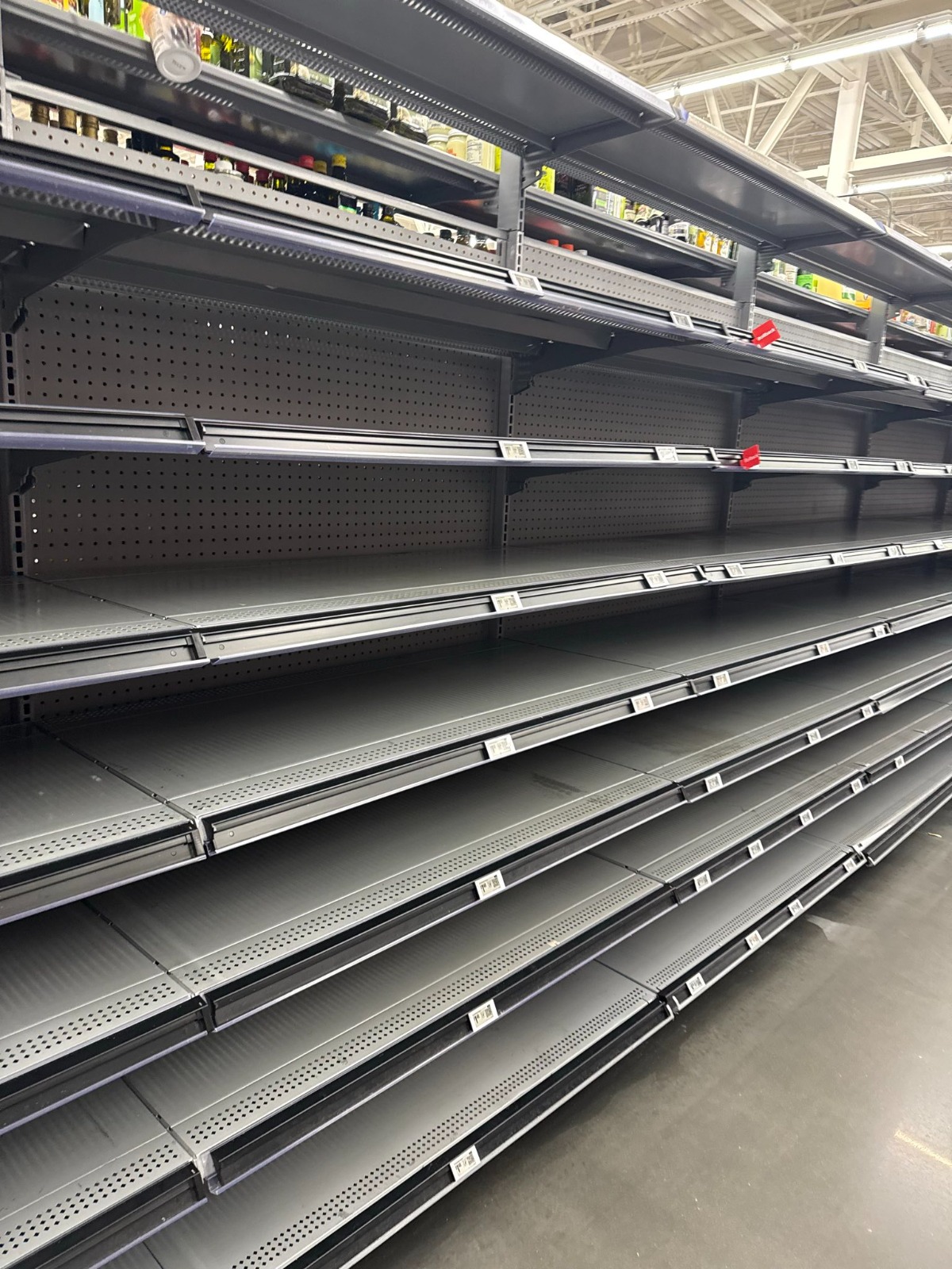 ونقلت مصادر ميدانية عن أحد العاملين في صناديق المحاسبة قوله إن الإدارة أبلغتهم بعدم توقع وصول أي شاحنات إمداد يوم الأحد، بسبب إغلاق الطرق المتوقع والظروف الجوية القاسية التي ستعطل حركة النقل والشحن.