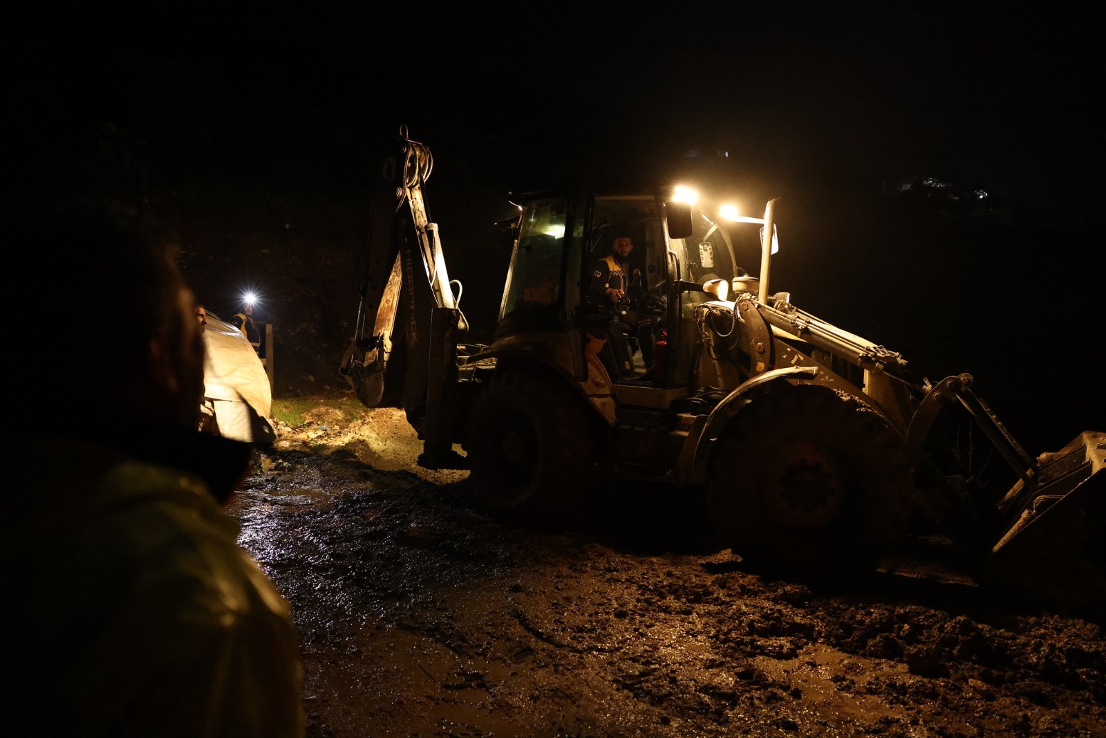 فتح الطرق: تعمل الآليات الثقيلة على إزالة العوائق الصخرية والطينية التي أدت لقطع طرق رئيسية في المنطقة.