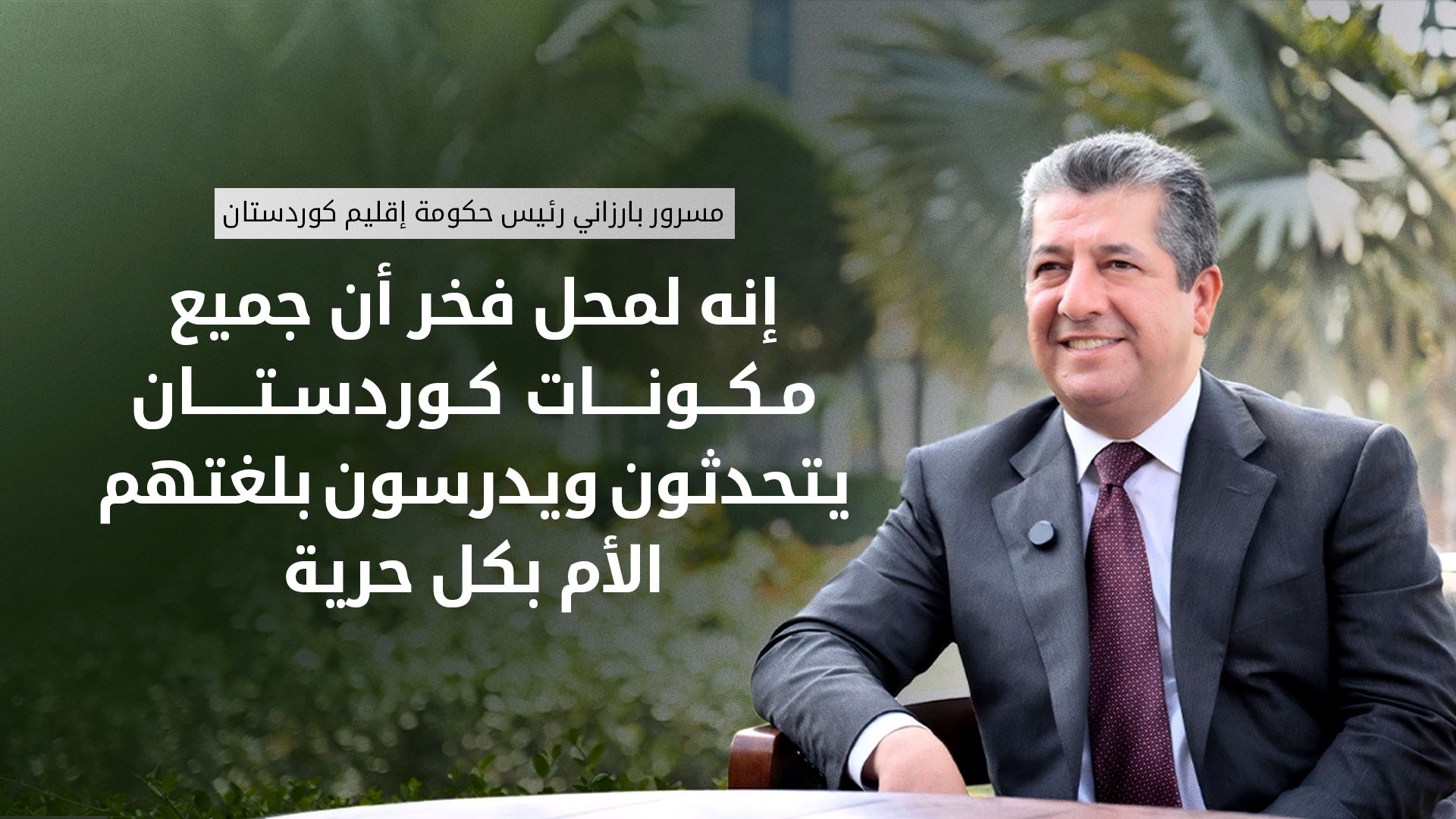 كما شدد رئيس الحكومة على التزام التشكيلة الوزارية بدعم وحماية التنوع اللغوي، قائلاً: "تجدد حكومة إقليم كوردستان التزامها بالاهتمام باللغة الكوردية، وكذلك بلغات كافة المكونات الأصيلة لشعب كوردستان، بما يضمن استمرار هذا الغنى الثقافي".