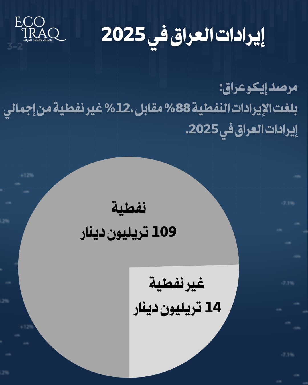 مبيناً أن "الإيرادات النفطية بلغت 109 تريليونات و207 مليارات دينار، فيما بلغت غير النفطية 14 تريليوناً و977 مليار دينار".