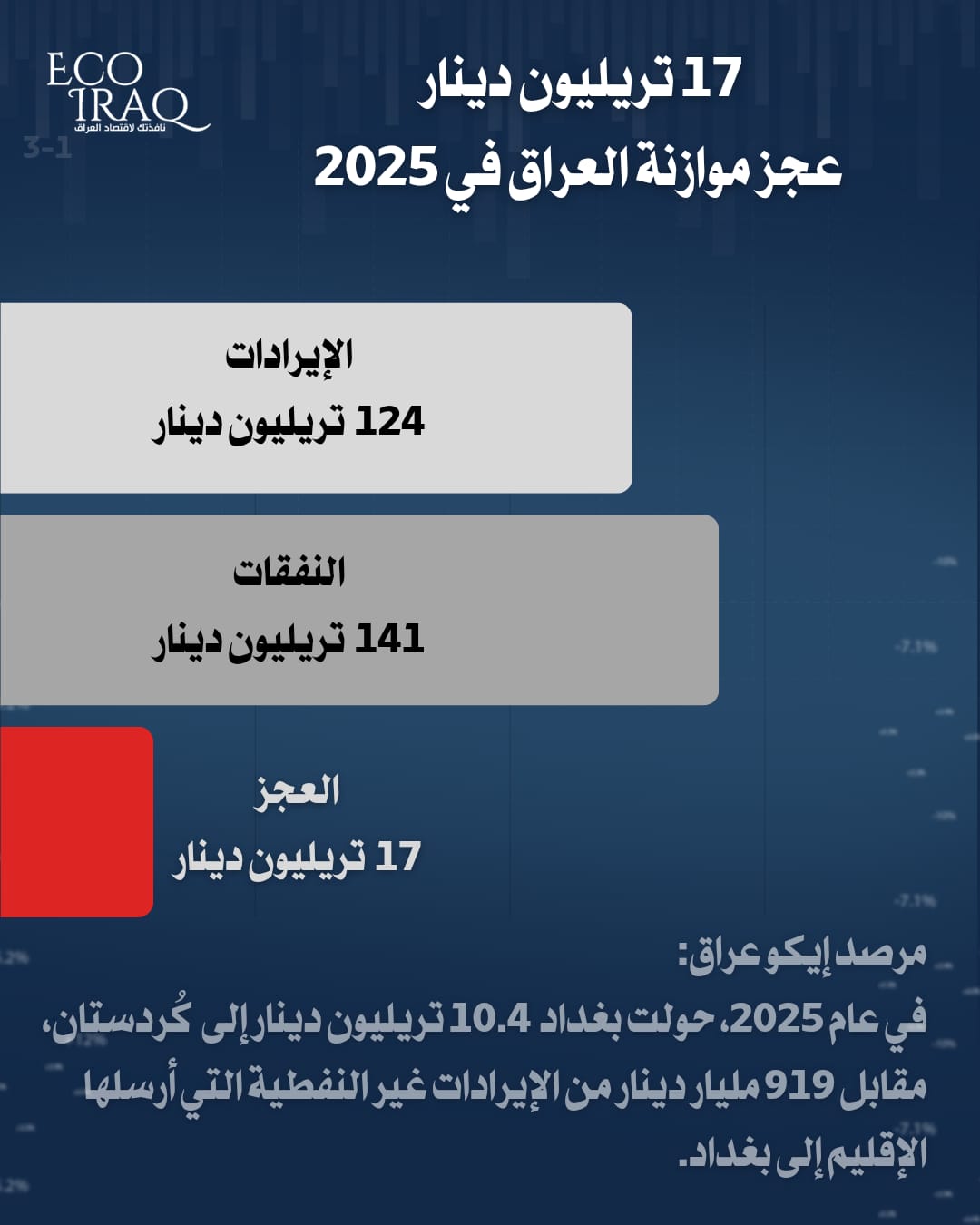 مرصد إيكو عراق: عجز الموازنة يتجاوز 17 تريليون دينار في 2025