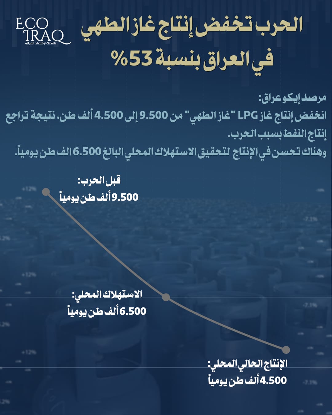 إيكو عراق: ازمة غاز الطهي لتراجع إنتاج الطهي إلى النصف بسبب الحرب