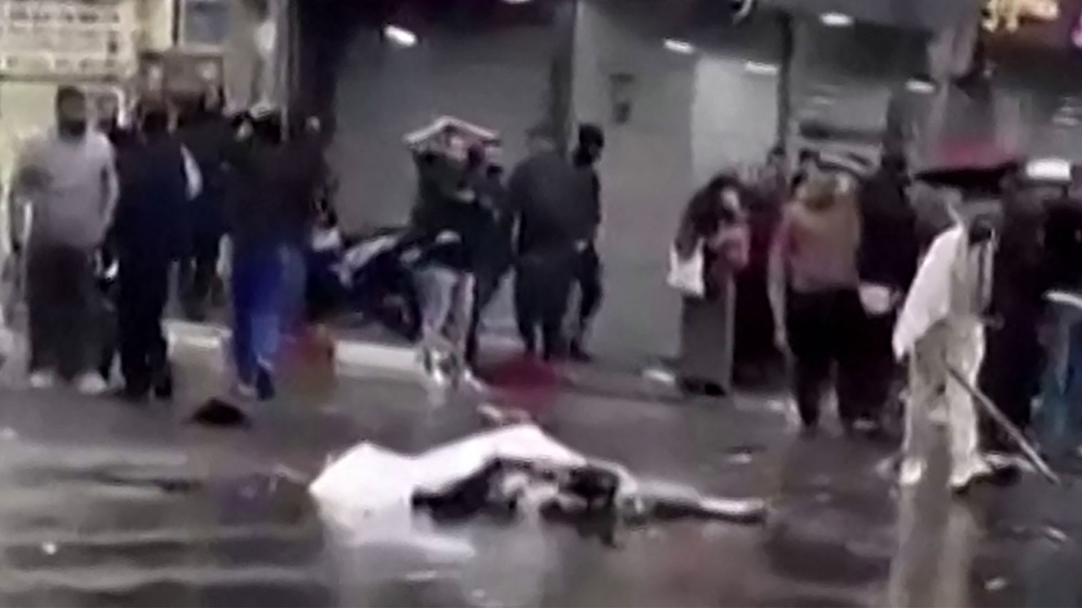 وتُظهر هذه الفيديوهات تجمّع عدد من الأشخاص حول الجثتين، بينما يُغطيهما المارة بأغطية تحت مطر خفيف. وبدت الجثتان مُشوّهتين بشدة، ولا يُمكن تحديد الظروف الدقيقة لوفاتهما.