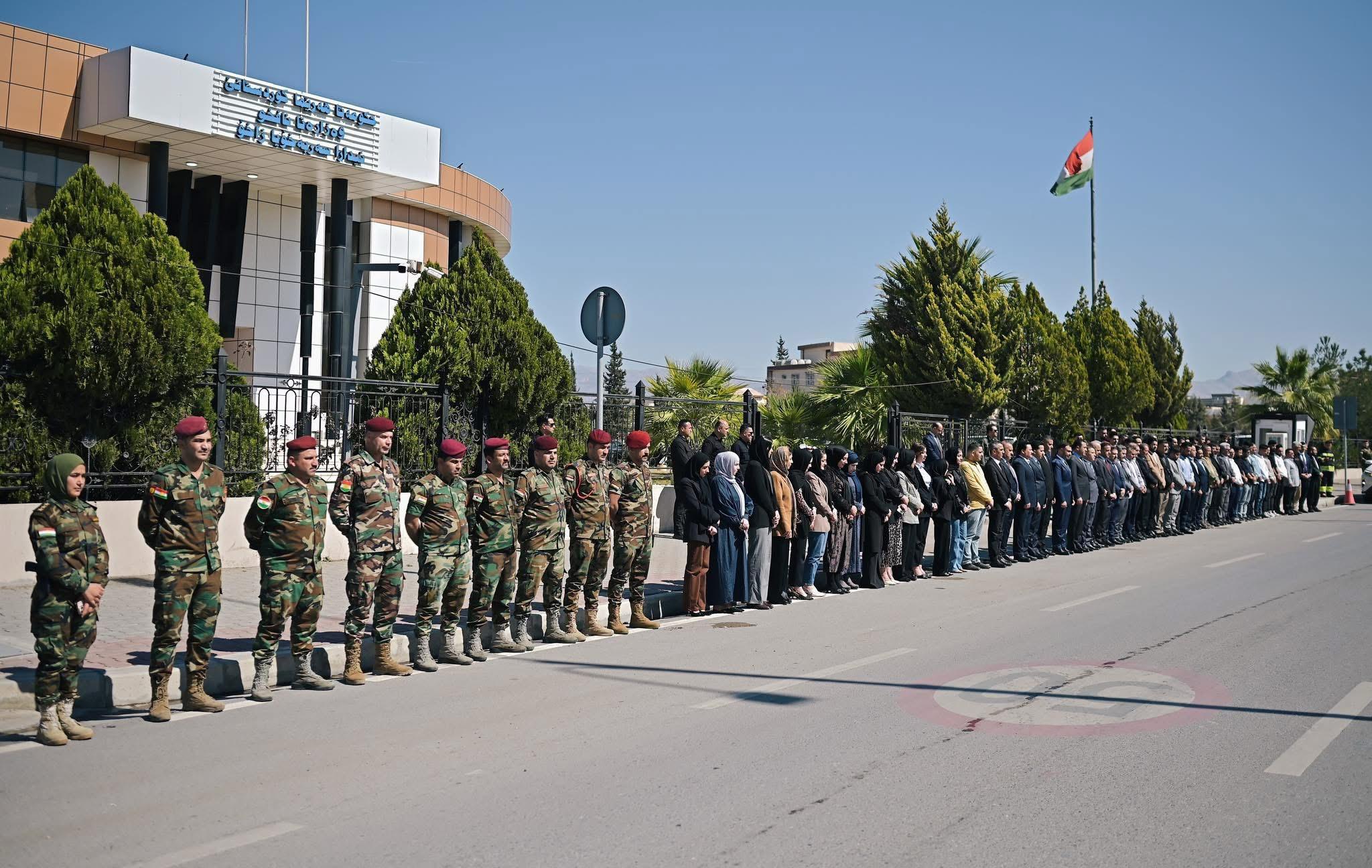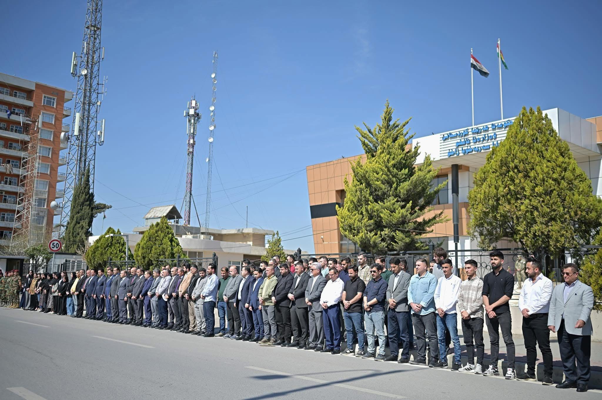 ئەمڕۆ کاتژمێر 11ی پێشوەڕۆ، 16ی ئاداری 2025، لە 37ـەمین ساڵیادی کیمیابارانی هەڵەبجە لە سەرتاسەری هەرێمی کوردستان هاووڵاتییان لە چین و توێژە جیاوازەکان، بەبێ جیاکاری پێکهاتەی نەتەوەیی و ئایینی هەموویان چەند خولەکێک بۆ ڕێزگرتن لە گیانی شەهیدانی کیمیاباران ڕاوەستان.