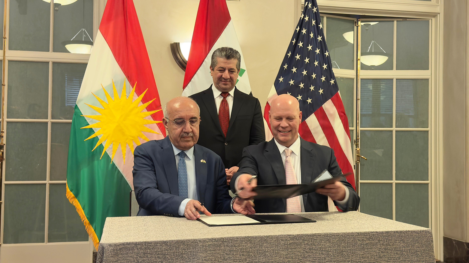 بەسەرپەرشتی سەرۆک وەزیران، مەسرور بارزانی، دووشەممە 19ی ئایاری 2025، لە واشنتن و لە ژووری بازرگانیی یەمەریکا لە ڕێوڕەسمێک دا دوو ڕێککەوتننامەی بواری وزە، لەنێوان وەزارەتی سامانە سروشتییەکانی حکوومەتی هەرێمی کوردستان لەگەڵ هەردوو کۆمپانیای نەوتی ئەمەریکی ئێچ کەی ئێن ئێنێرجی و وێستێرن زاگرۆس ئیمزا کران.