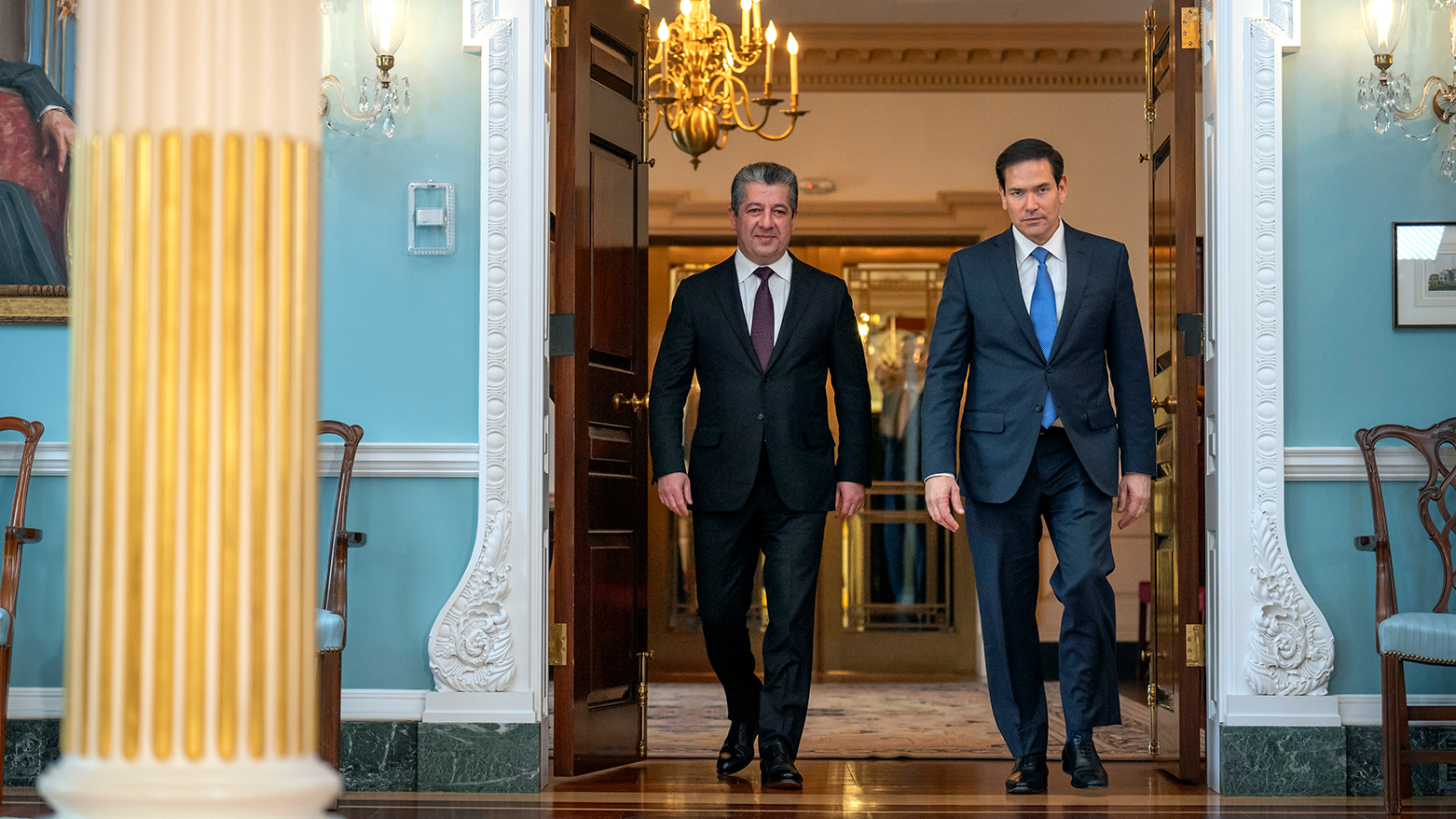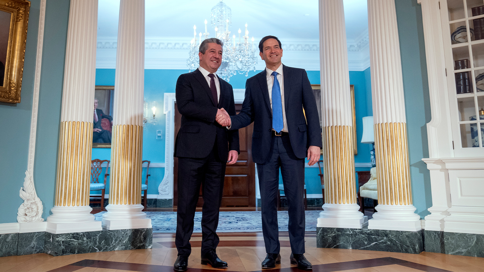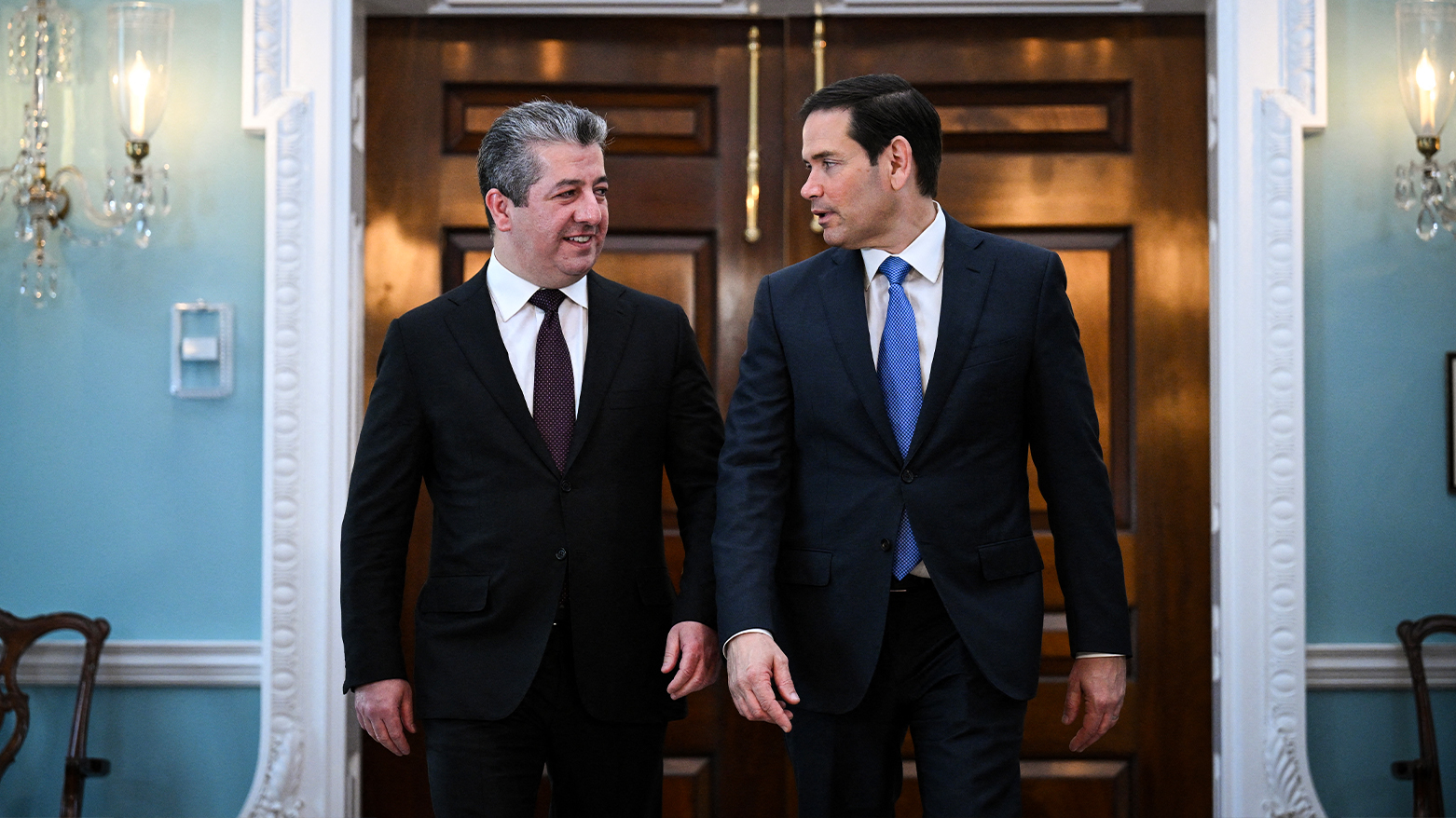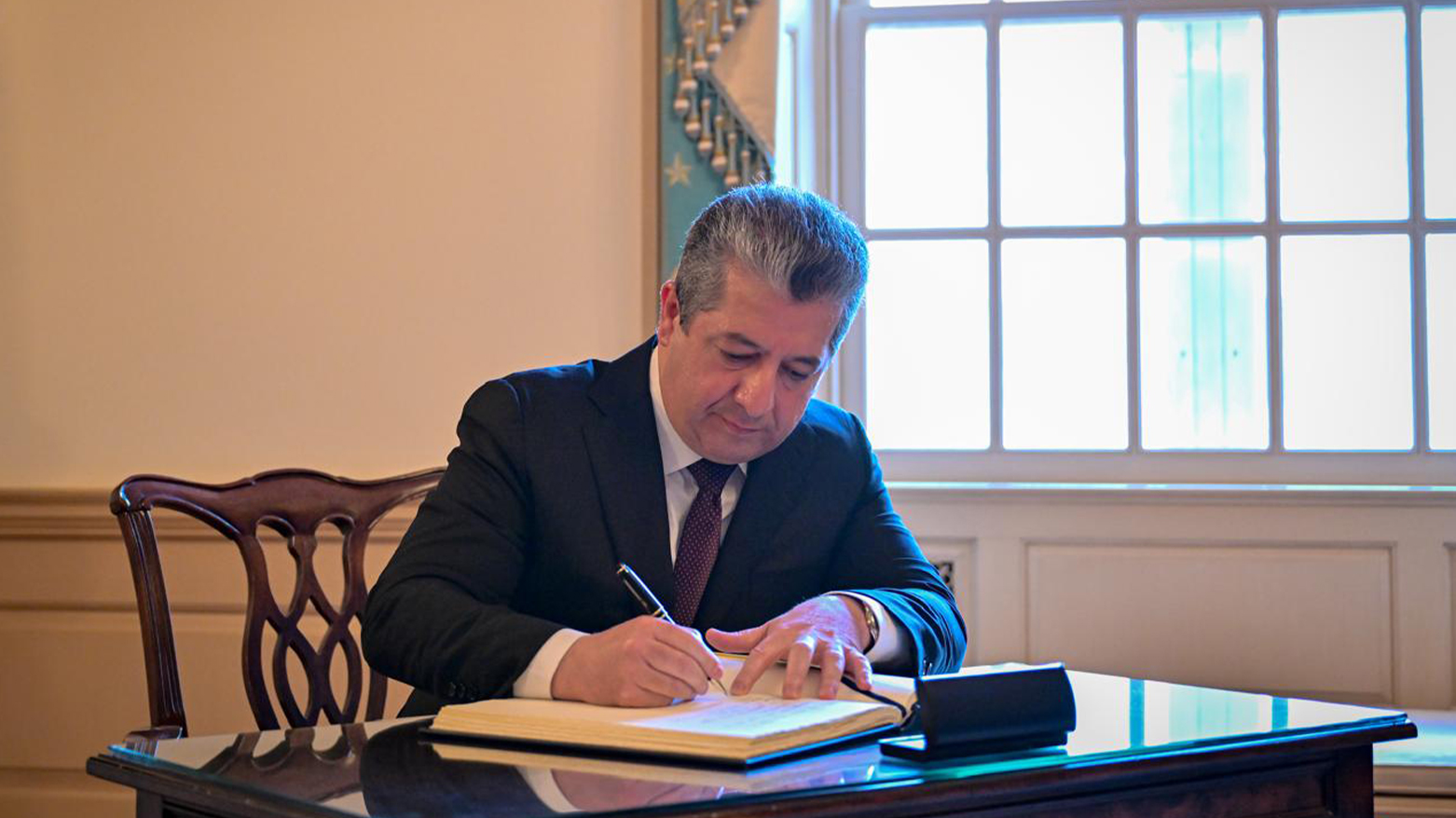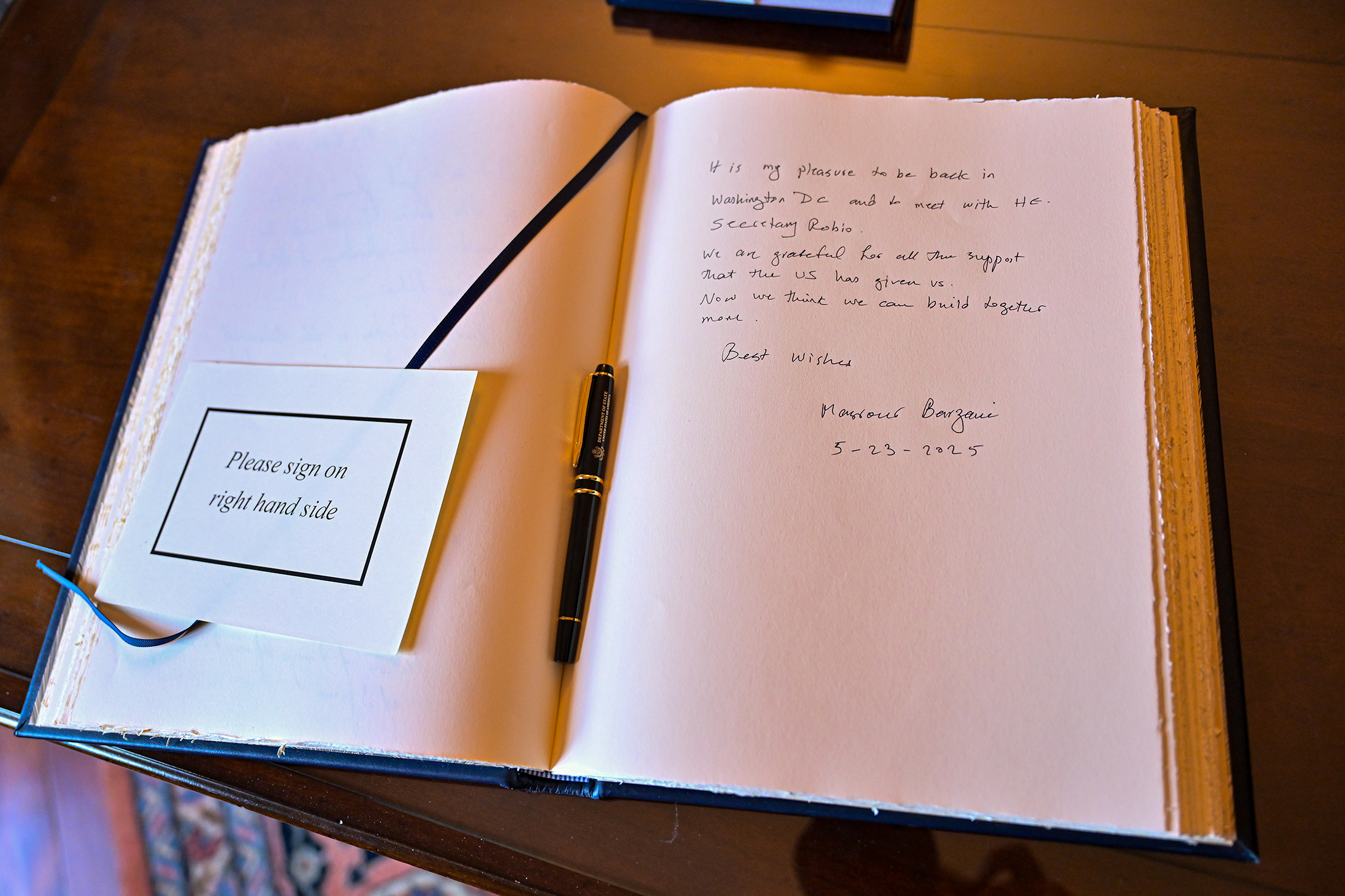 مەسرور بارزانی، سەرۆکی حکوومەتی هەرێمی کوردستان، ئەمڕۆ هەینی 23ـی ئایاری 2025، لە باڵەخانەی وەزارەتی دەرەوەی ئەمەریکا (هاری ئێس تروومان) لە واشنتن، لەگەڵ مارکۆ ڕوبیۆ، وەزیری دەرەوەی ئەو وڵاتە کۆبووەوە و لە دوای کۆبوونەوەکەش یاداشتێکی لە دەفتەری یاداشتنامەکانی وەزارەتەکە نووسی.