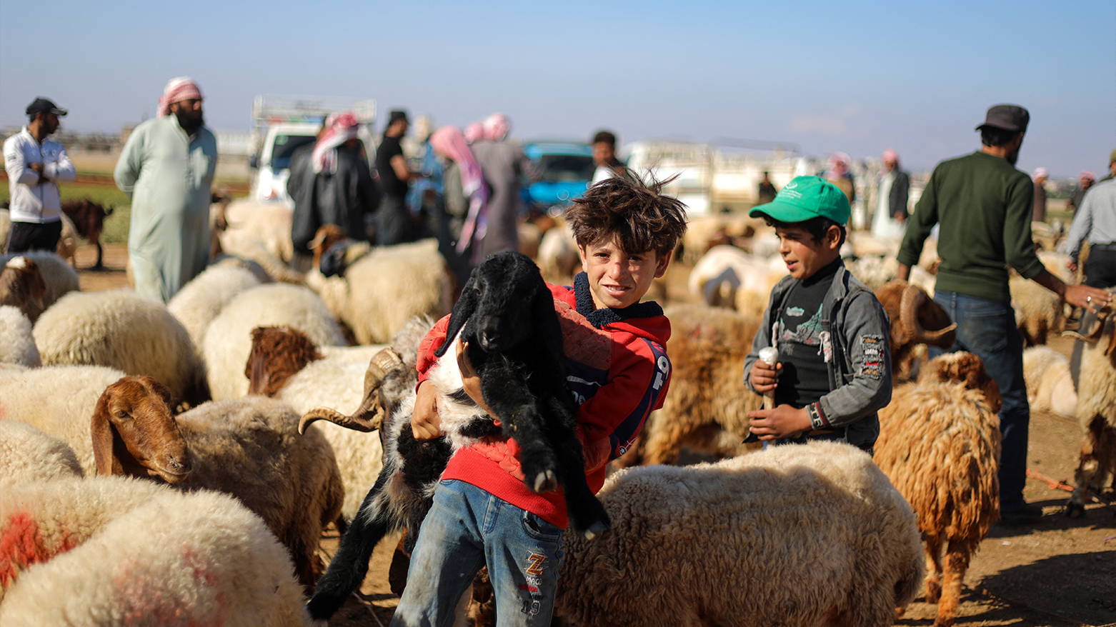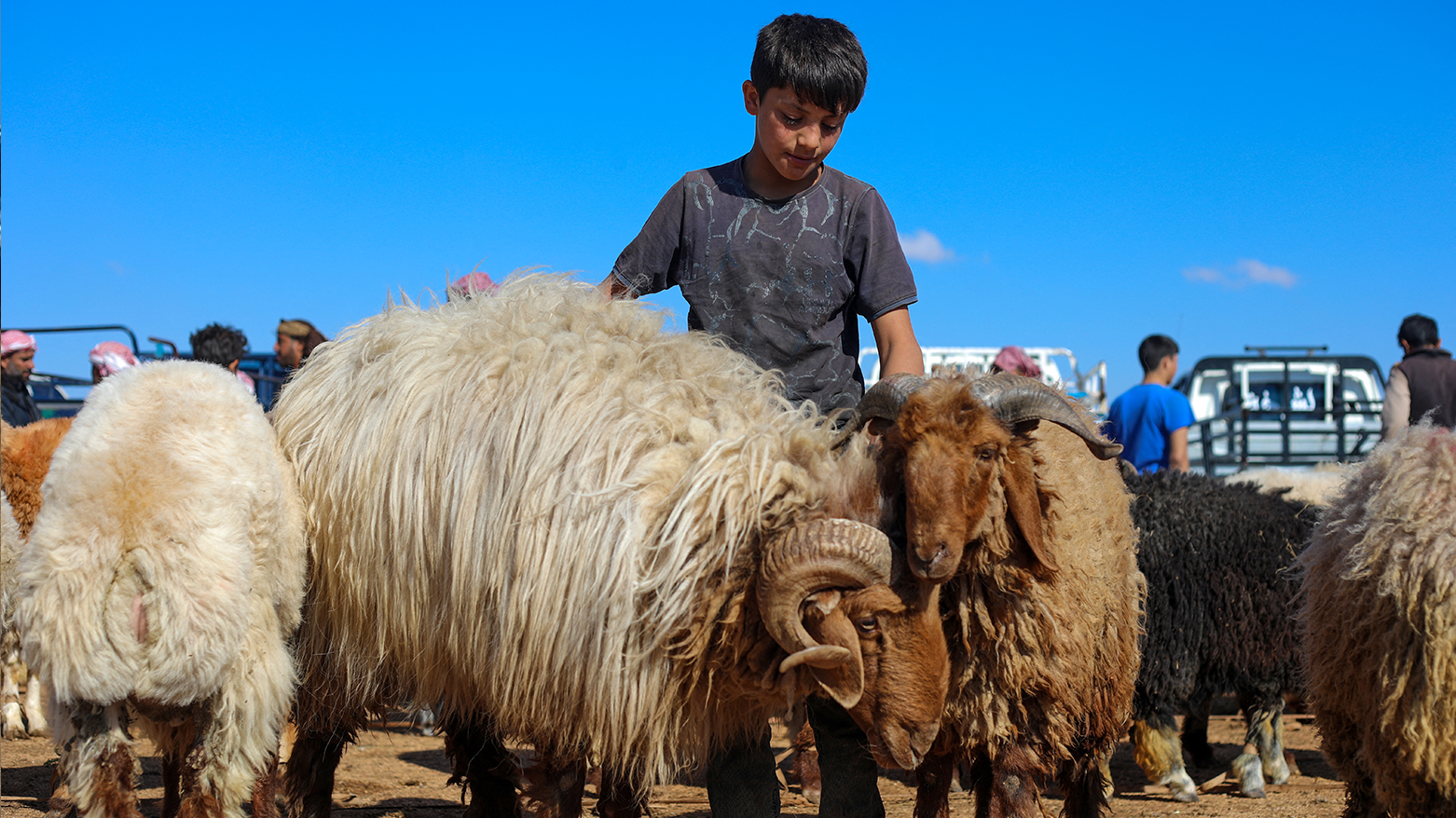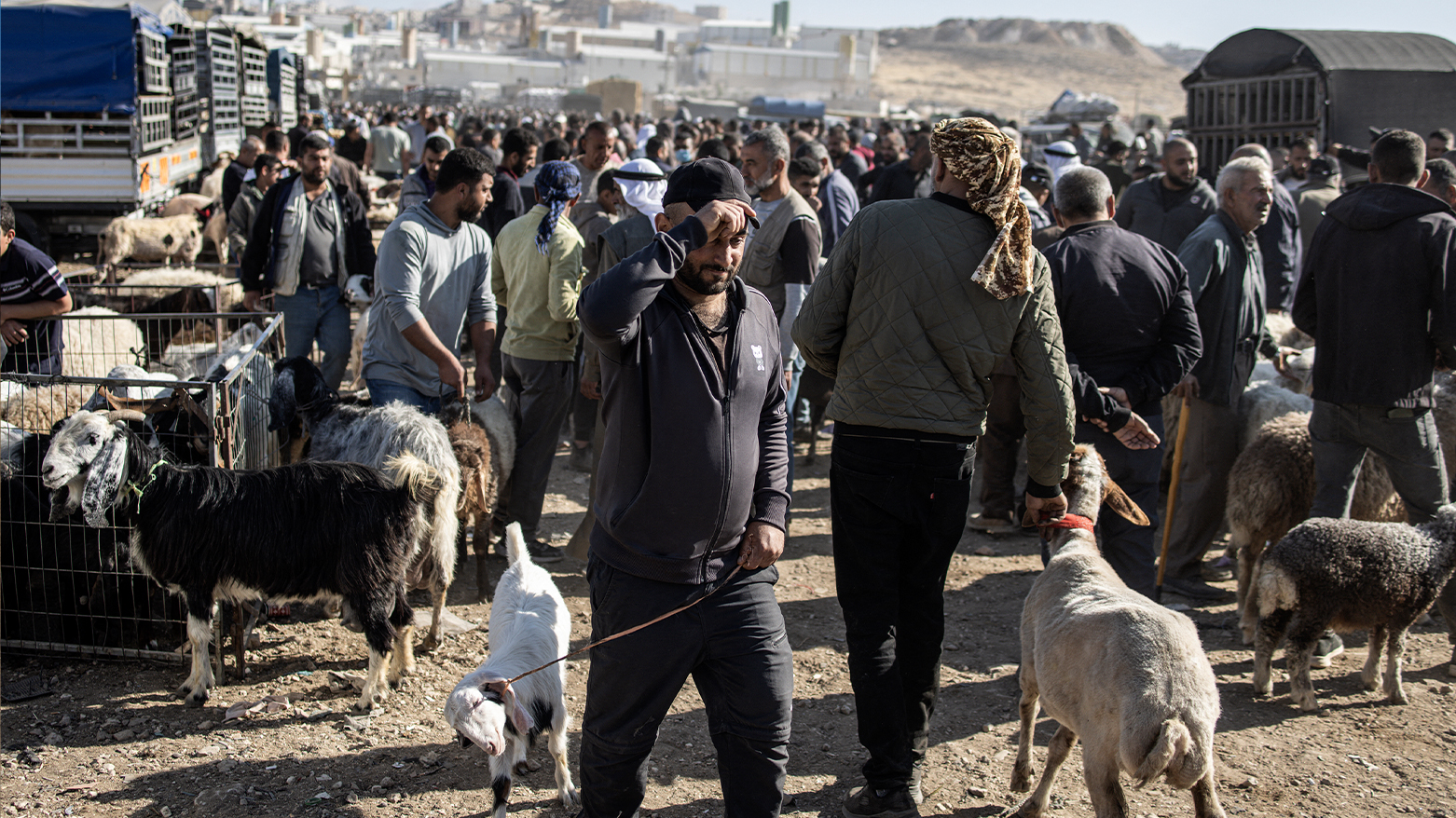 دیمەنی بازاڕی ئاژەڵفرۆشانی مەعرەت مسرین لە باکووری ئیدلب لە سووریا، بە نزیکبوونەوەی جەژنی قوربانی پیرۆز جمەی دێت لە هاووڵاتییان، خەڵکی بۆ کڕینی ئاژەڵی قوربانی ڕوو لەو بازاڕە دەکەن بۆ ئەوەی بە گوێرەی توانا ماددییەکانیان بەشداری لە قوربانیدان و پیرۆزکردنی ئەم جەژنە بکەن، لە دوای ڕووخانی ڕژێمی بەشار ئەسەد، ئەمە دووەمین جەژنە خەڵکی سووریا بەشداری ڕێوڕەسمەکان دەبن.