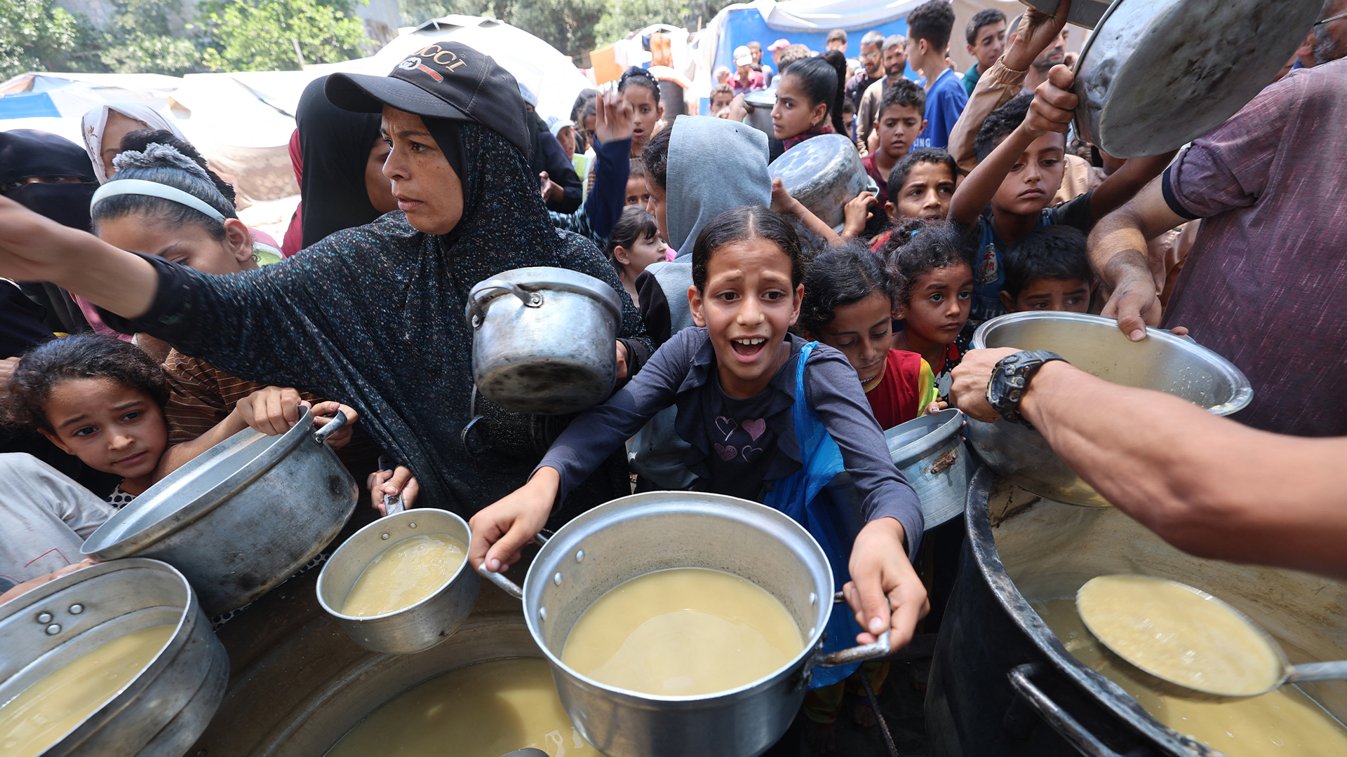 دانیشتووانی غەززە دوای زیاتر لە ساڵێک و نیو لە شەڕ و ماڵوێران، نەخۆشی و قەیرانی خۆراک هێندەی شەڕ و پێکدادانەکانی شەکەتی کردوون، ئەمە دیمەنی بەشێک لە خەڵکی غەززەیە بۆ وەرگرتنی ژەمە خواردنێک ناڵەیان دێت، کە لەبەردەم ئەو شوێنە خێرخوازییانە نۆرە دەگرن، خواردن بەسەر خەڵکی دابەش دەکەن.