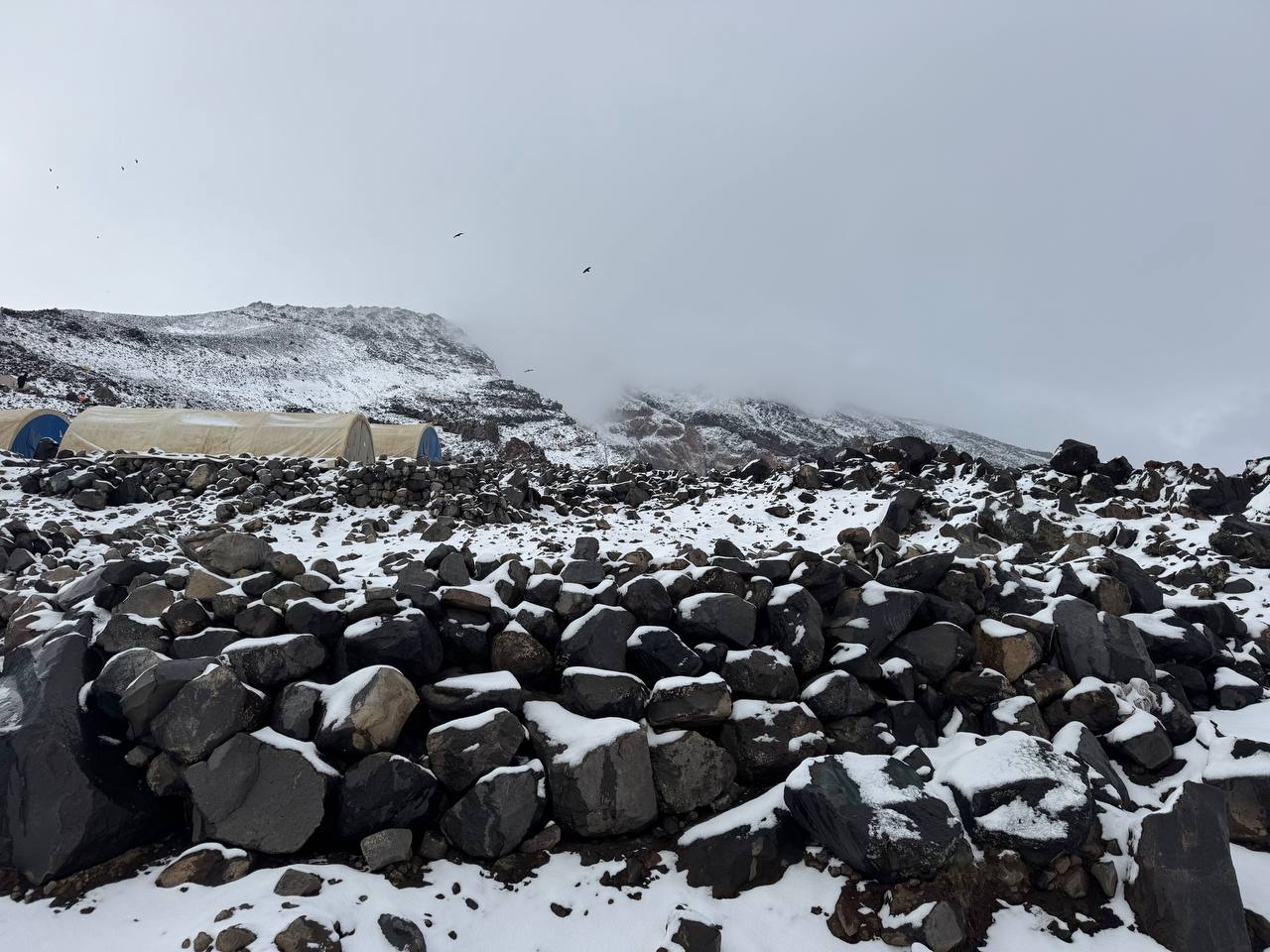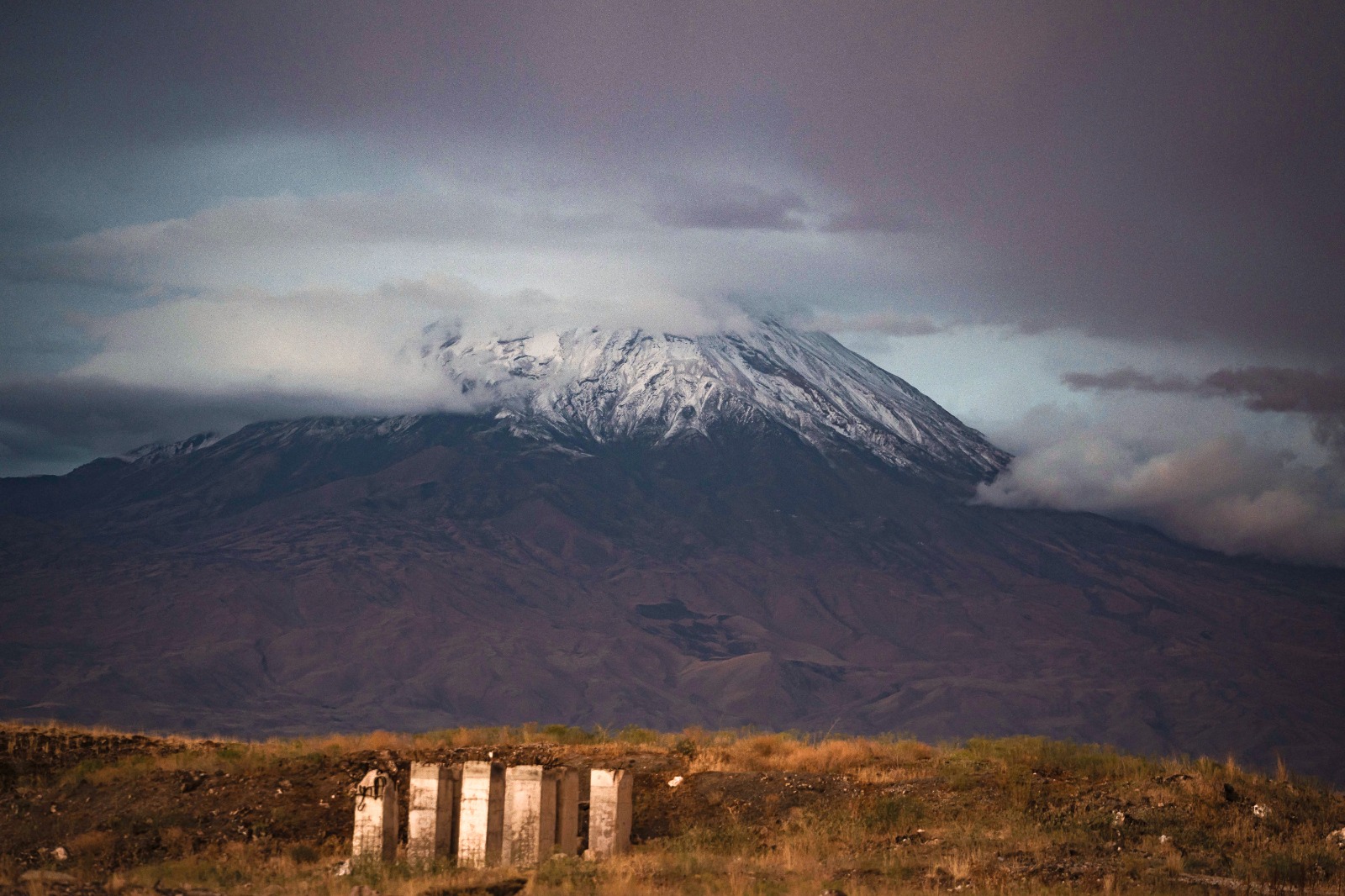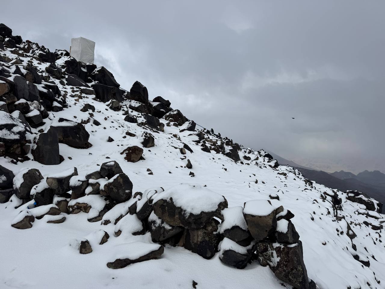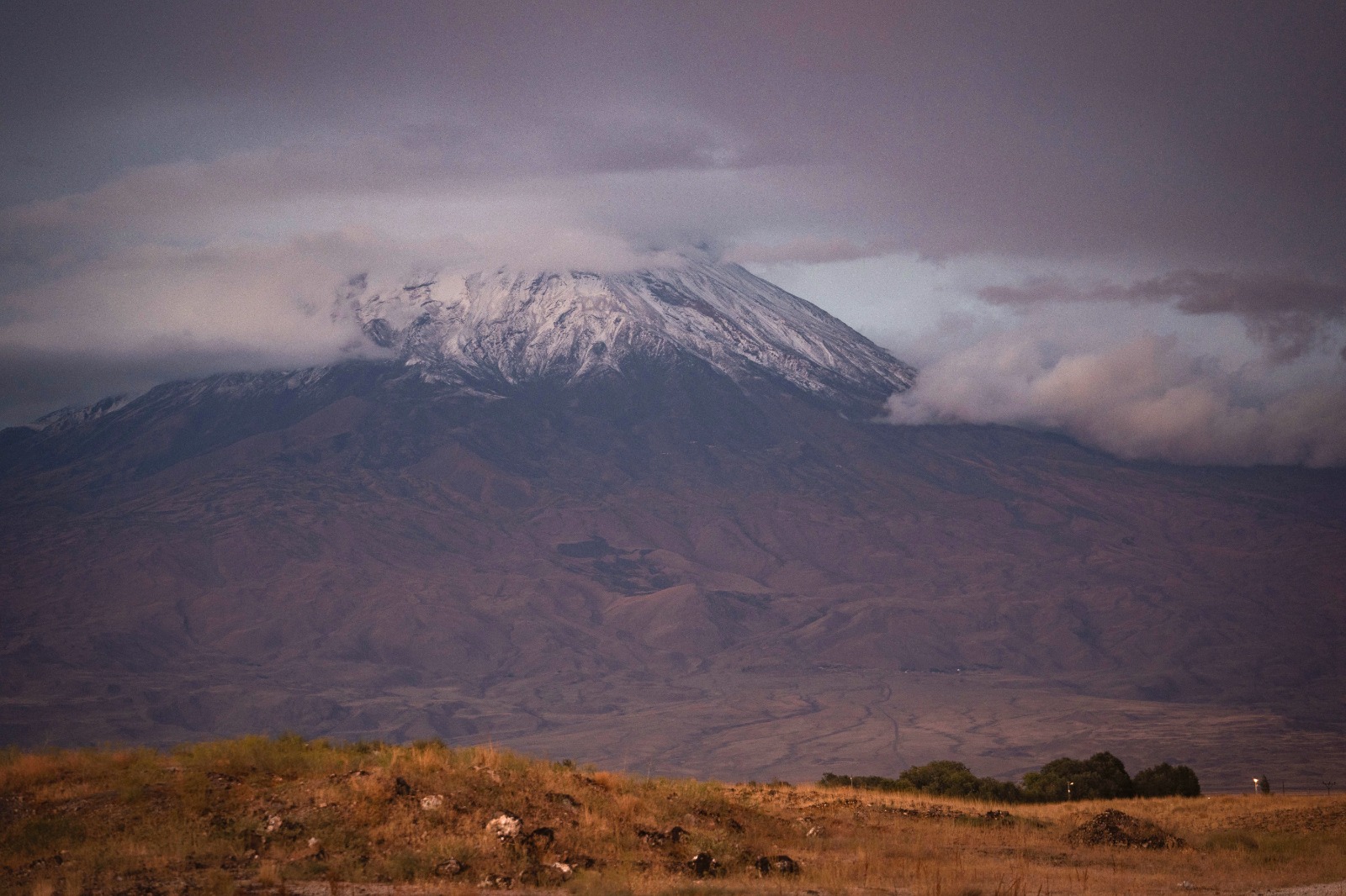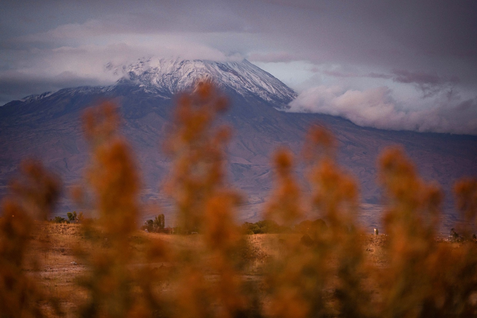 لە لووتکەی چیای ئاگری لە قەزای دۆغوبایەزید، لە پارێزگای ئاگریی باکووری کوردستان، یەکەم بەفری ئەمساڵ باری. (وێنە: AA)