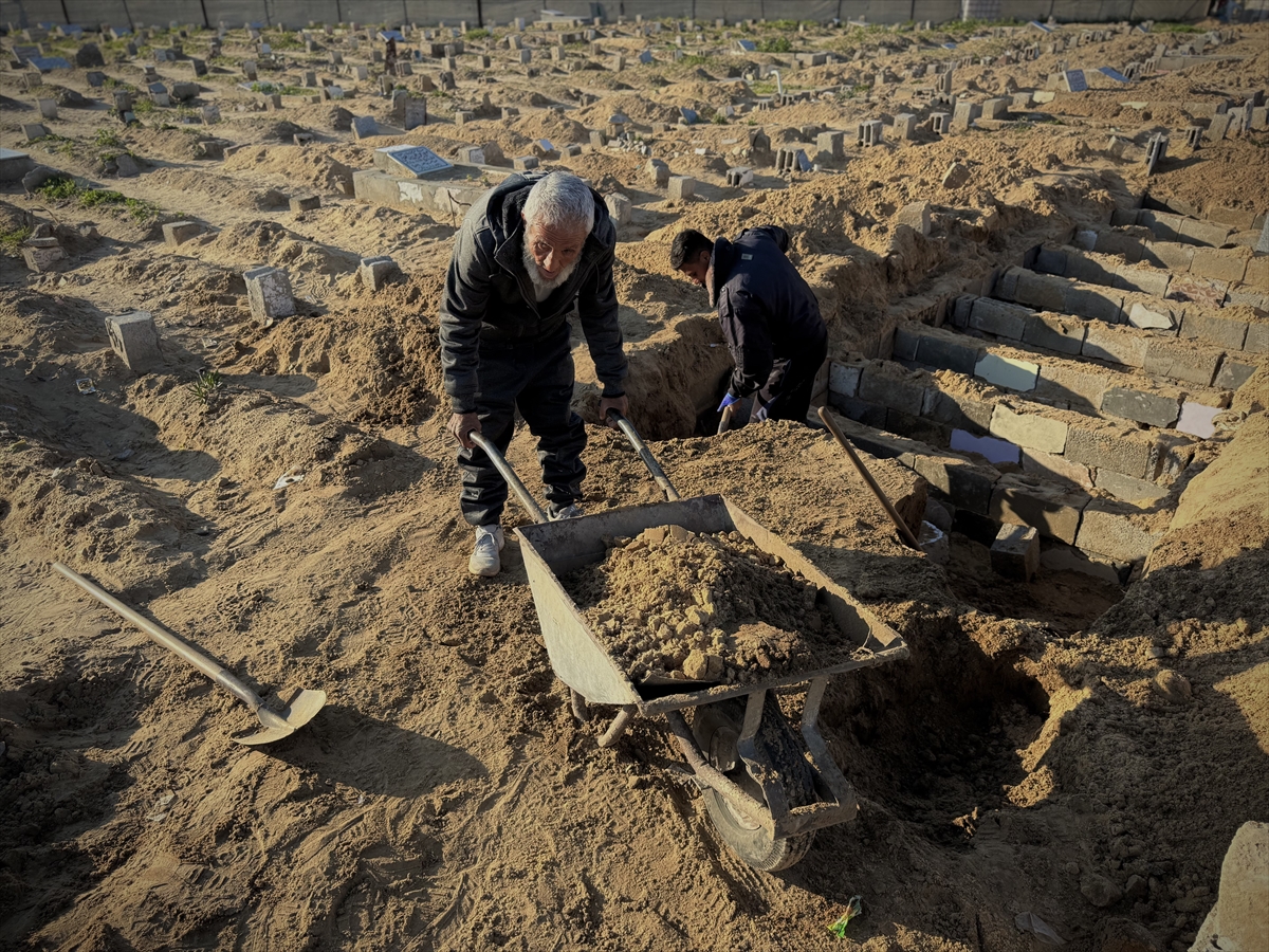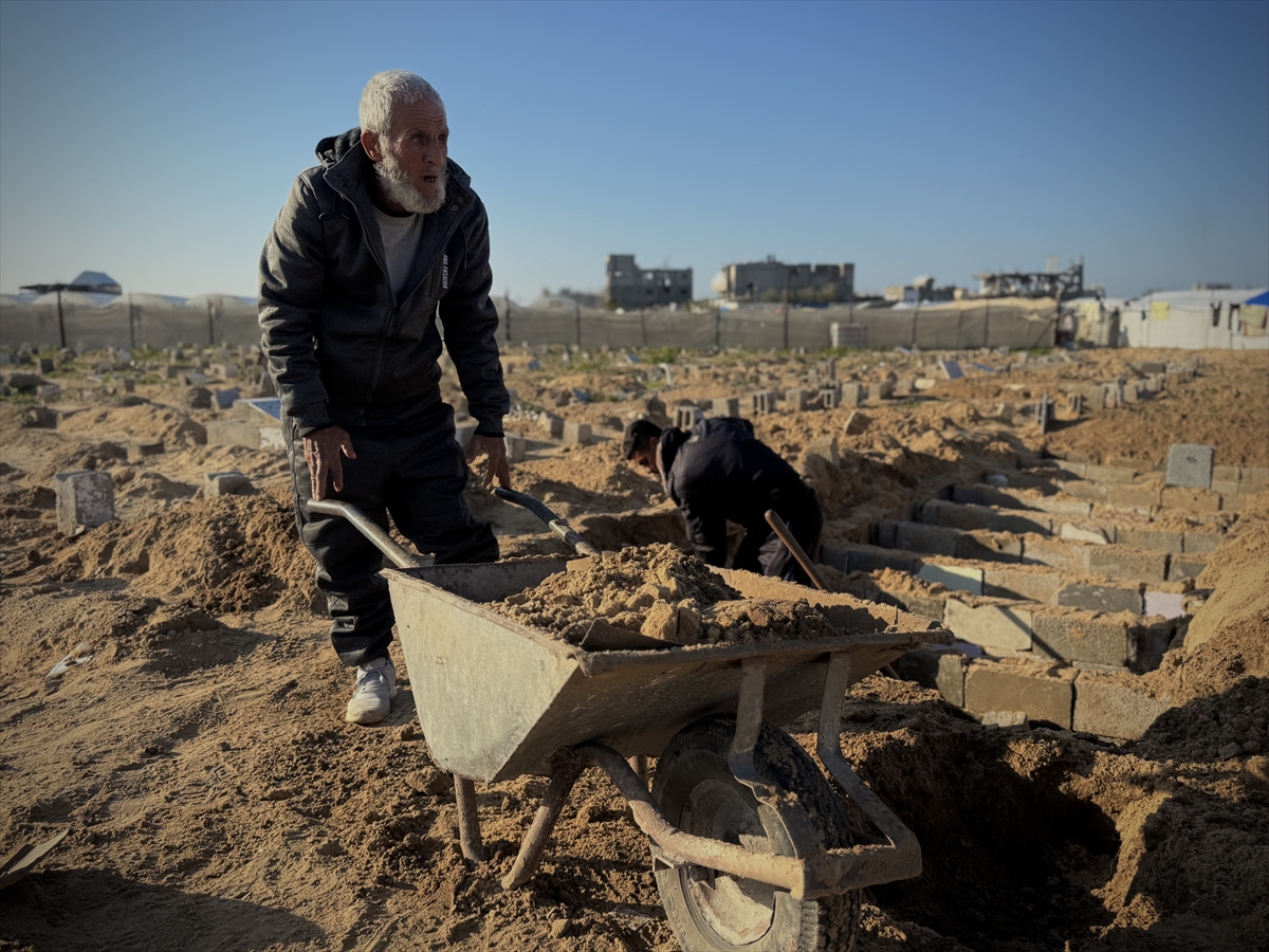 یوسف ئەبو حەتاب (65 ساڵ)، تا ئێستا گۆڕی بۆ زیاتر لە 18 هەزا فەڵەستینی هه‌ڵكه‌ندووه‌ كه‌ له‌ هێرشەکانی ئیسرائیل بۆ سەر کەرتی غەززە کوژراون. ئەبو حەتاب کە لەو هێرشانەدا برا و کوڕێکی لەدەستداوە، سەرەڕای هەڵکشانی تەمەنی، هەموو ڕۆژێک بۆ ماوەی چەندین کاتژمێر لە گۆڕستانێکی خان یونس کار دەکات و بەردەوامە لەسه‌ر پیشەکەی. (وێنە: AA)