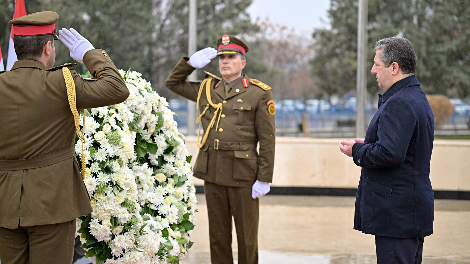 ئەمڕۆ یەکشەممە، 1ـی شوباتی 2026،  بە ئامادەبوونی مەسرور بارزانی، سەرۆکی حکوومەتی هەرێمی کوردستان، رێوڕەسمی ساڵیادی 'شەهیدانی یەکی شوبات' لە هەولێر بەڕێوەچوو، لە رێوڕەسمەکەدا، سەرۆکی حکوومەتی هەرێمی کوردستان، تاجەگوڵینەی رێز و وەفای لەسەر مۆنۆمێنتی شەهیدانی یەکی شوبات دانا.