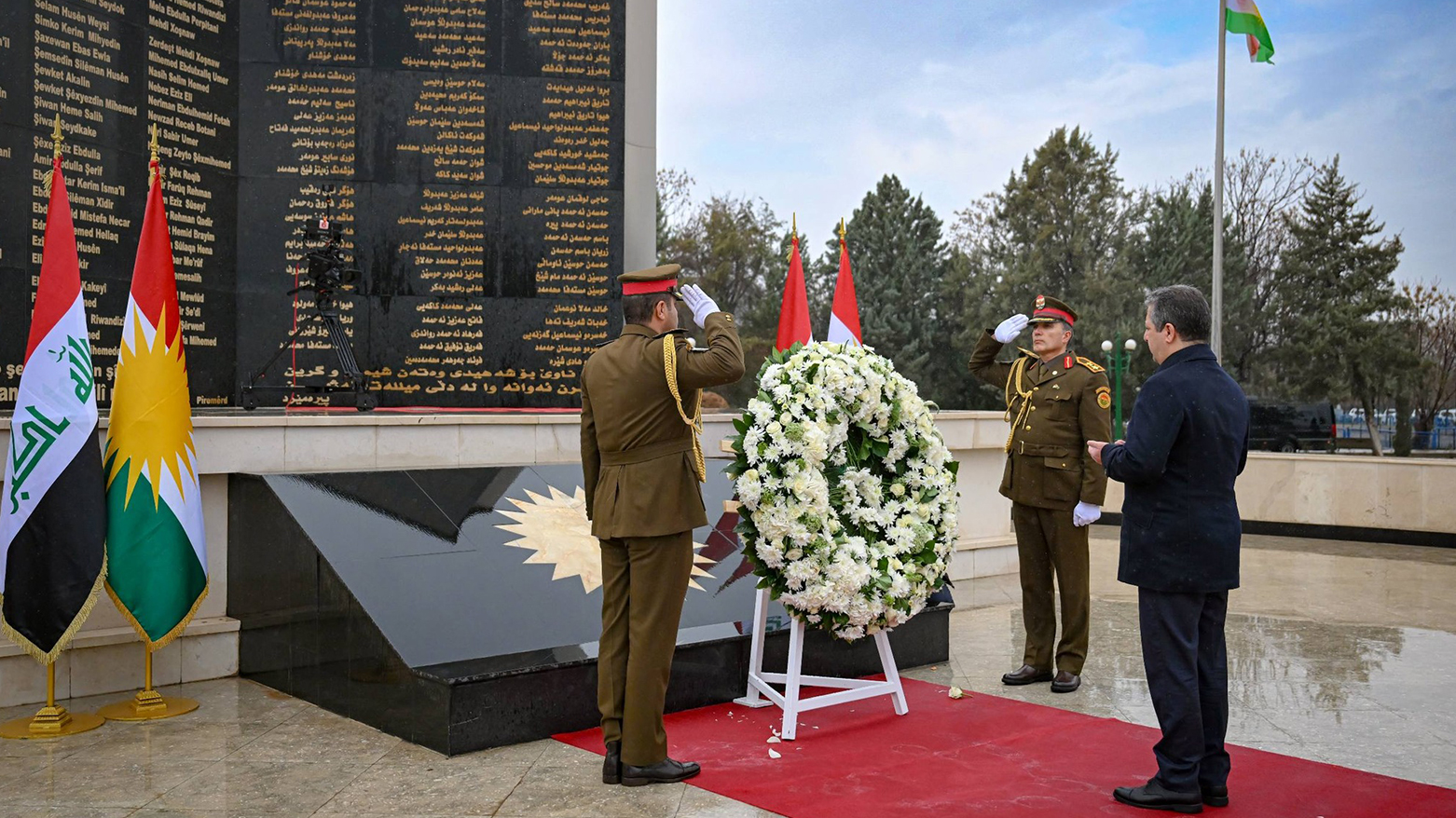 مەسرور بارزانی تاجەگوڵینەی رێز و وەفای لەسەر مۆنۆمێنتی شەهیدانی یەکی شوبات دانا