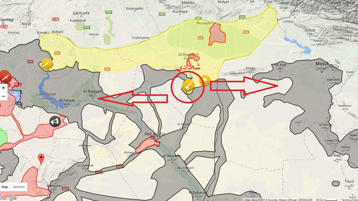 روانگهكه روونيكردووهتهوه،له ميانى پێشڕهوييهكانياندا يهپهگه توانيويهتى ههردوو شاڕێگهى پهيوهندى نێوان شهدادى و رهققه له لايهك و شهدادى و مووسڵ له لايهكى ديكهوه بپچڕێنن.