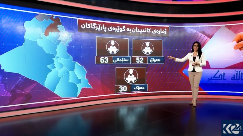 لە پارێزگای هەولێر 52 کاندید لەلایەنەکان رکابەری بۆ بەدەستهێنانی کورسی دەکەن و بەسەر پێنج بازنەدا دابەشبووە، لە پارێزگای سلێمانی 63 کاندید و لە دهۆکیش 30 کاندید هەن.