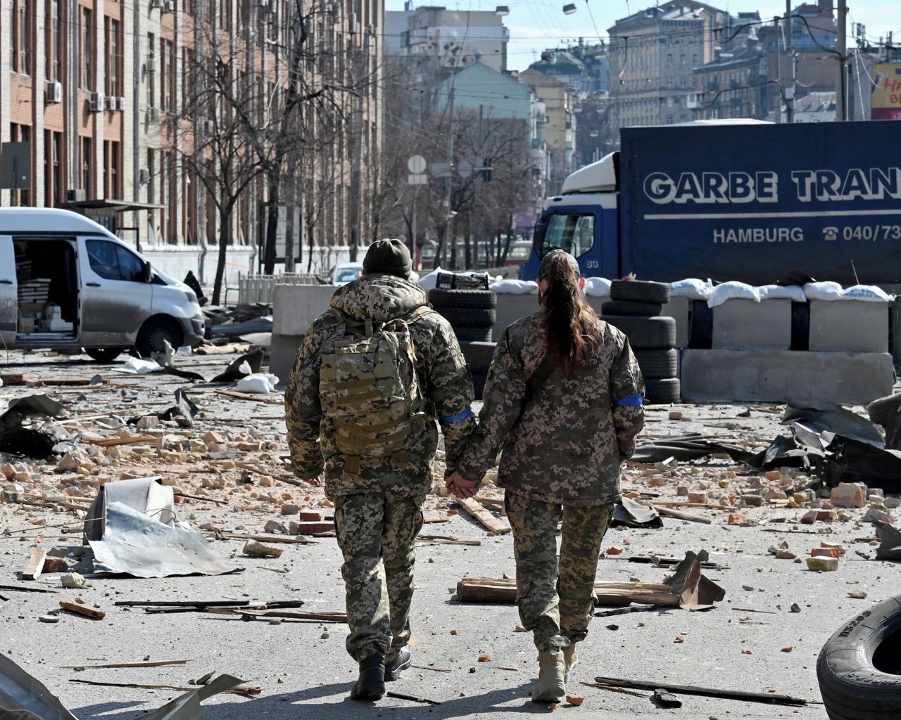 رۆژنامهی گاردیان دهڵێت: "70 بینای بهرز به رۆكێت و مووشهكی دوورهاوێژ و بۆردوومانی فڕۆكهی رووسیاوه وێران بوون، ههموو سهره سهعاتێك گوێت لهدهنگی دژه فڕۆكه و دژه مووشهكی ئۆكرانیا دهبێت یان گوێت له بۆردوومانی تۆپخانهكانی ئۆكرانیا دهبێت، كه پێگه و سهربازگهی رووسیا لهنزیك كیێڤ بۆردوومان دهكهن، یان بهپێچهوانهوه گوێت له كهوتنی مووشهكی رووسیا دهبێت، بهكورتی ئهستهمه بۆردوومانی ههردوولا لهیهك جیابكهیتهوه".