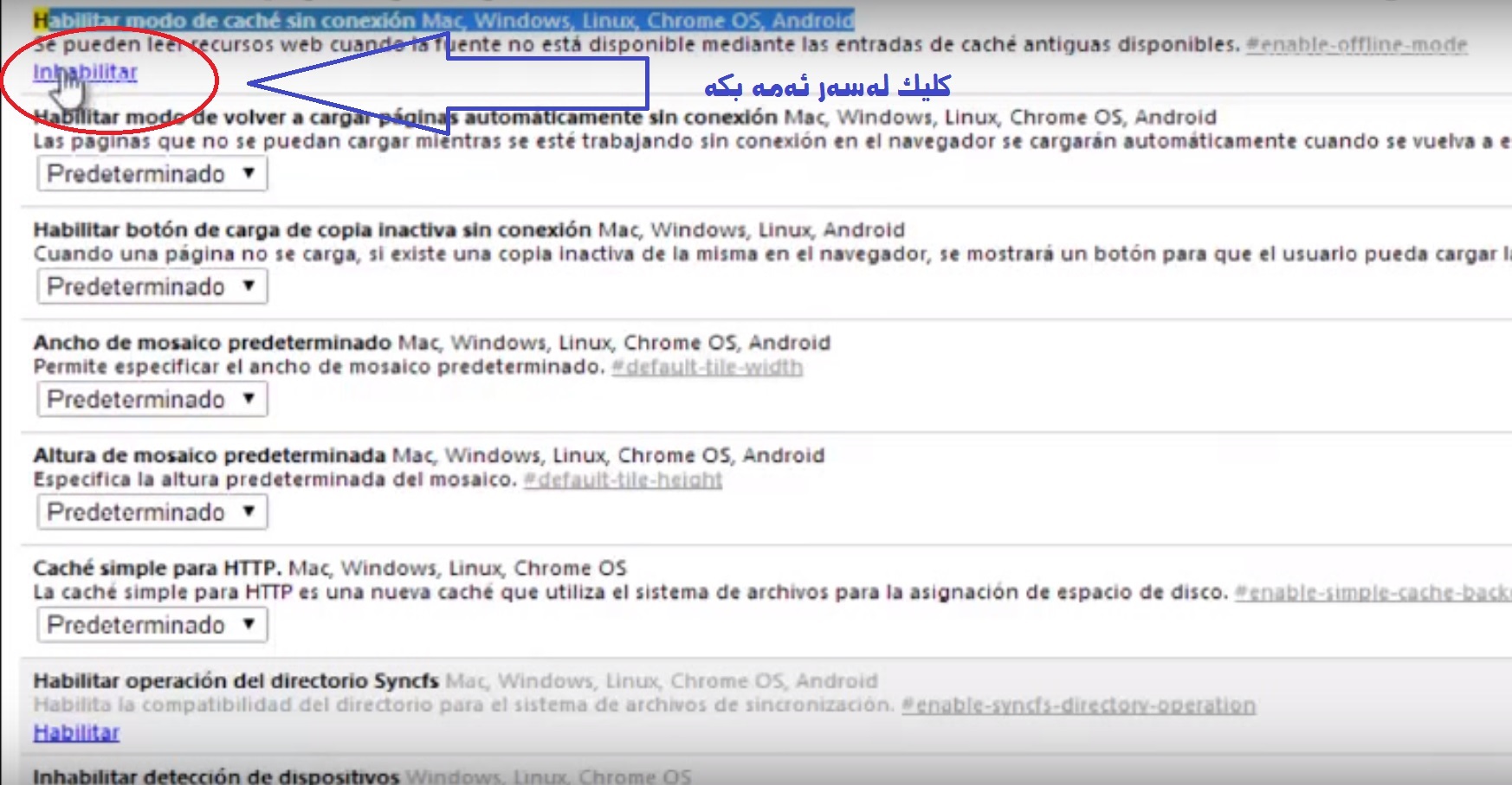 پاشان پهرێكى نوێت بۆ دهبێتهوه ههروهكو لهو وێنهى خوارهوه دياره كليك لهسهر Inhabilitar بكه راستهوخۆ دهتباته نيو ئهو ماڵپهڕانهى كه پێشتر سهردانت كردوون.